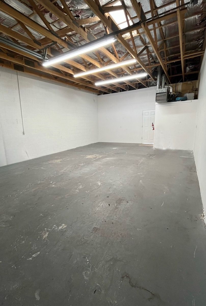 Main office, side office, warehouse, 10x10 roll up door and bathroom