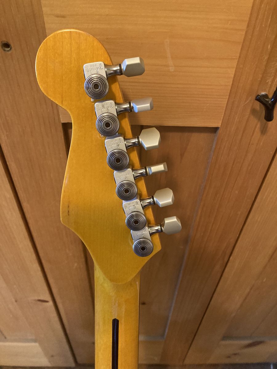 Sperzel locking tuners MIM bridge Am Std tone block Fender saddles Bone nut Alnico5