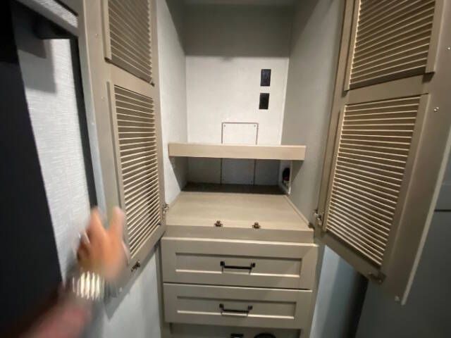 Maximum Storage: The unobstructed pass-through storage is huge, featuring metal slam-latch doors that feel like they belong on a high-end motorhome.