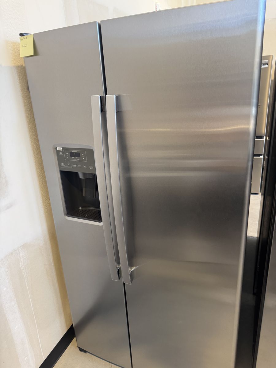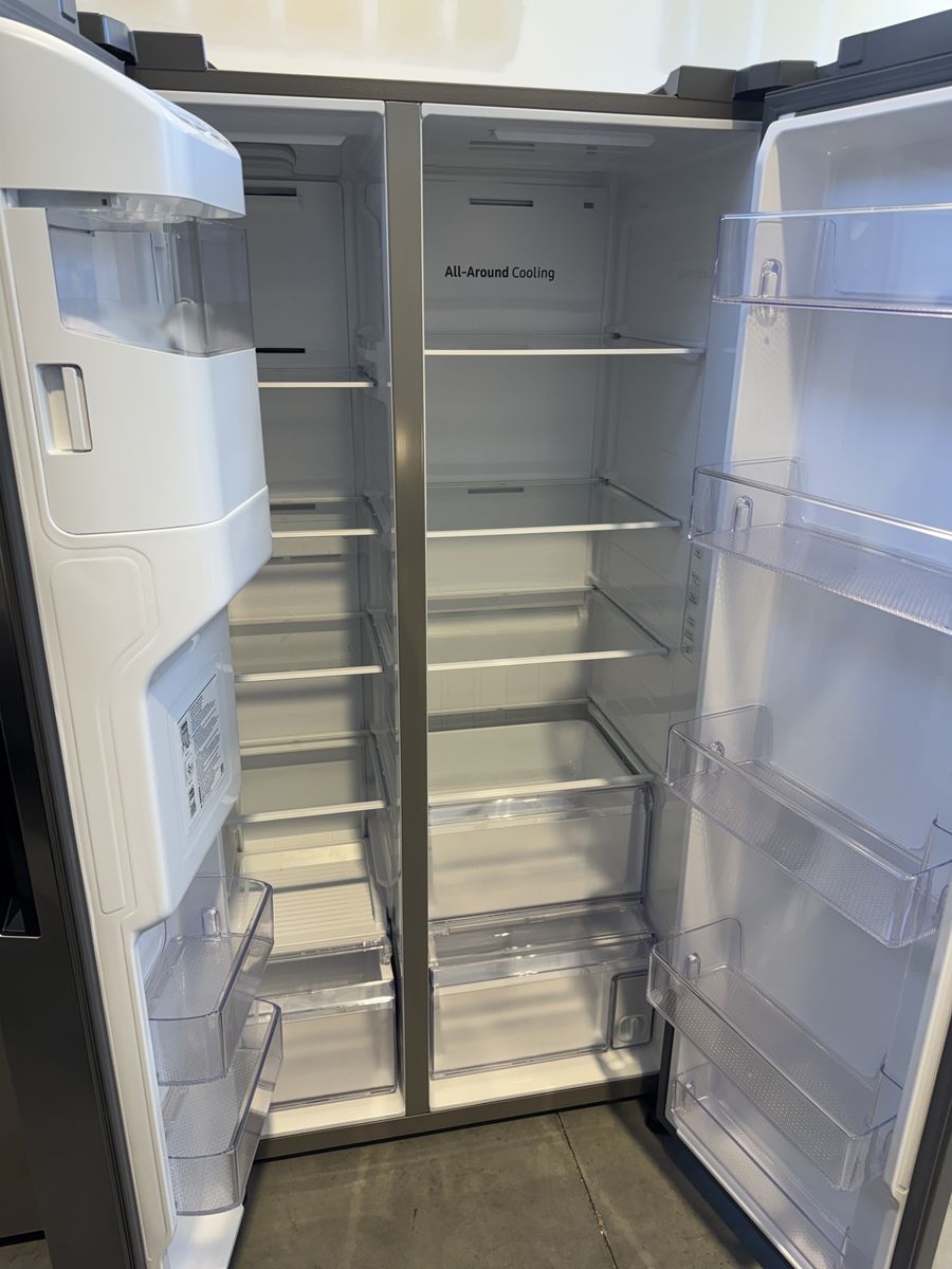New Scratch and dent Samsung 27.4 cu. ft. Large Capacity Side by Side Refrigerator- black stainless steel.