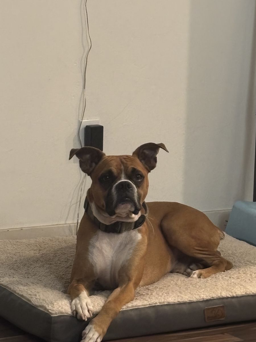Ryder is a 3.5 year old Mini boxer. I don't know outside of boxer what the other breed was. He is not neautured had his first rounds of shots, etc. I took him through the petsmart training program (I failed the follow up training).