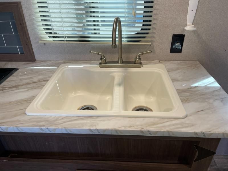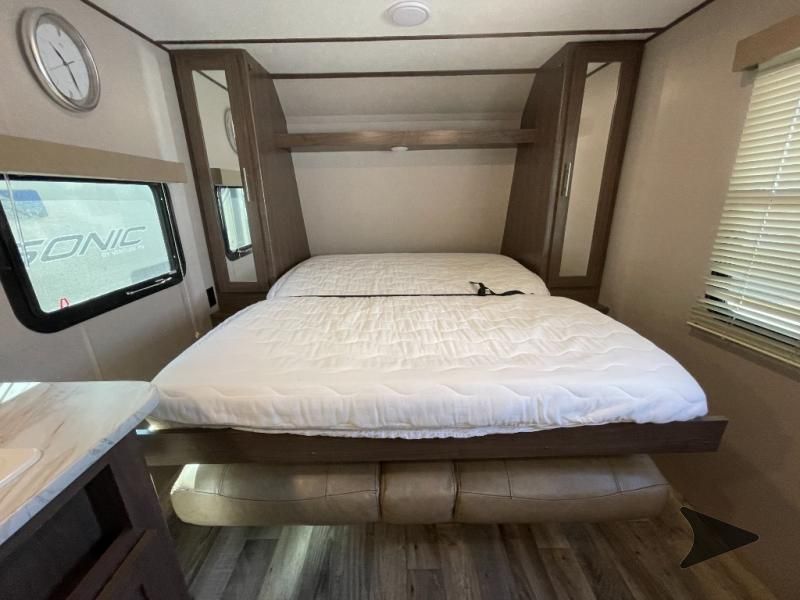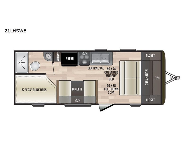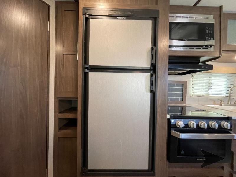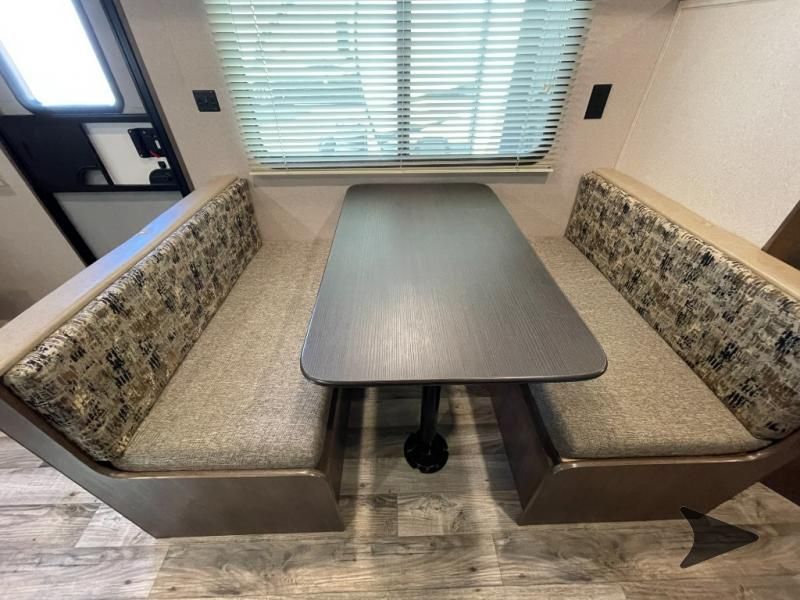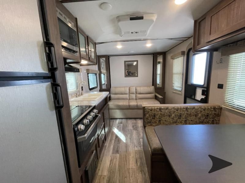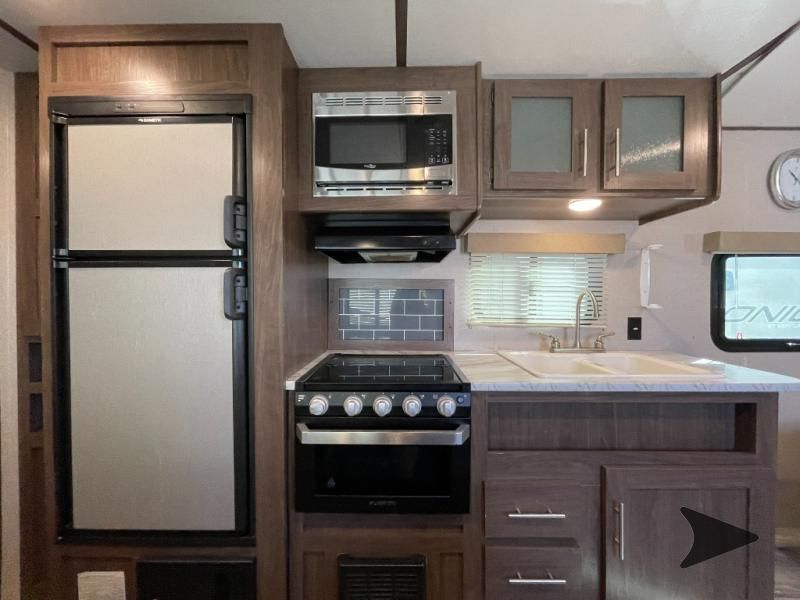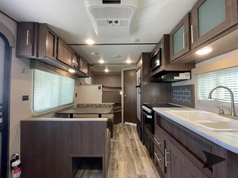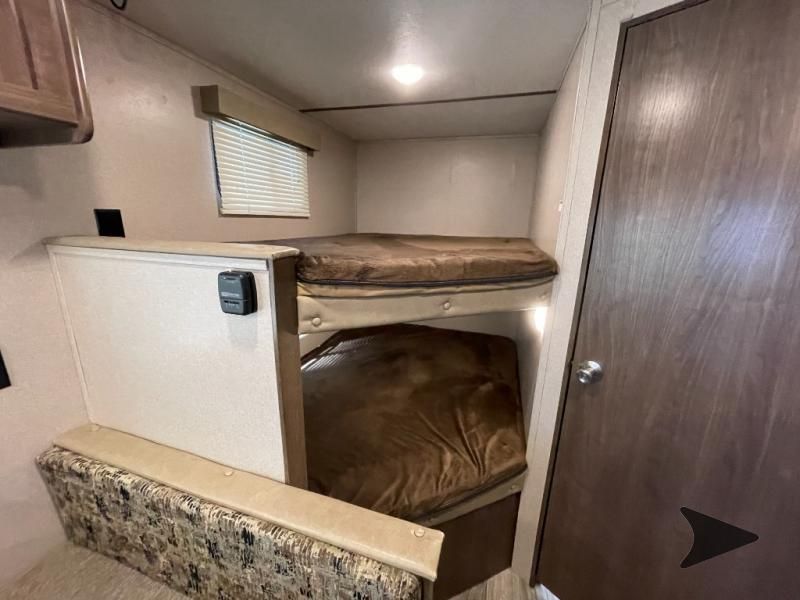 Great lightweight bunkhouse camper that’s easy to tow and perfect for family trips. Sleeps up to 6–7 with rear double bunks, a Murphy bed up front, and convertible dinette. Features a full kitchen (3-burner stove, oven, microwave, fridge), bathroom with shower, power awning, outdoor speakers, and plenty of storage. Approx. 25’ long with a dry weight around 4,400 lbs. and 60-gallon fresh water tank. Ready to camp!