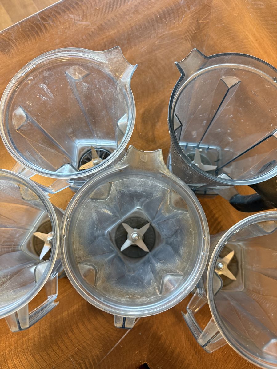 ApplePayI have five Vitamix blender jars for sale. They are somewhat juice stained, but could be cleaned with a good scrubbing. The blades are intact in a good condition. I’m asking $25 apiece or $100 for all five of them.