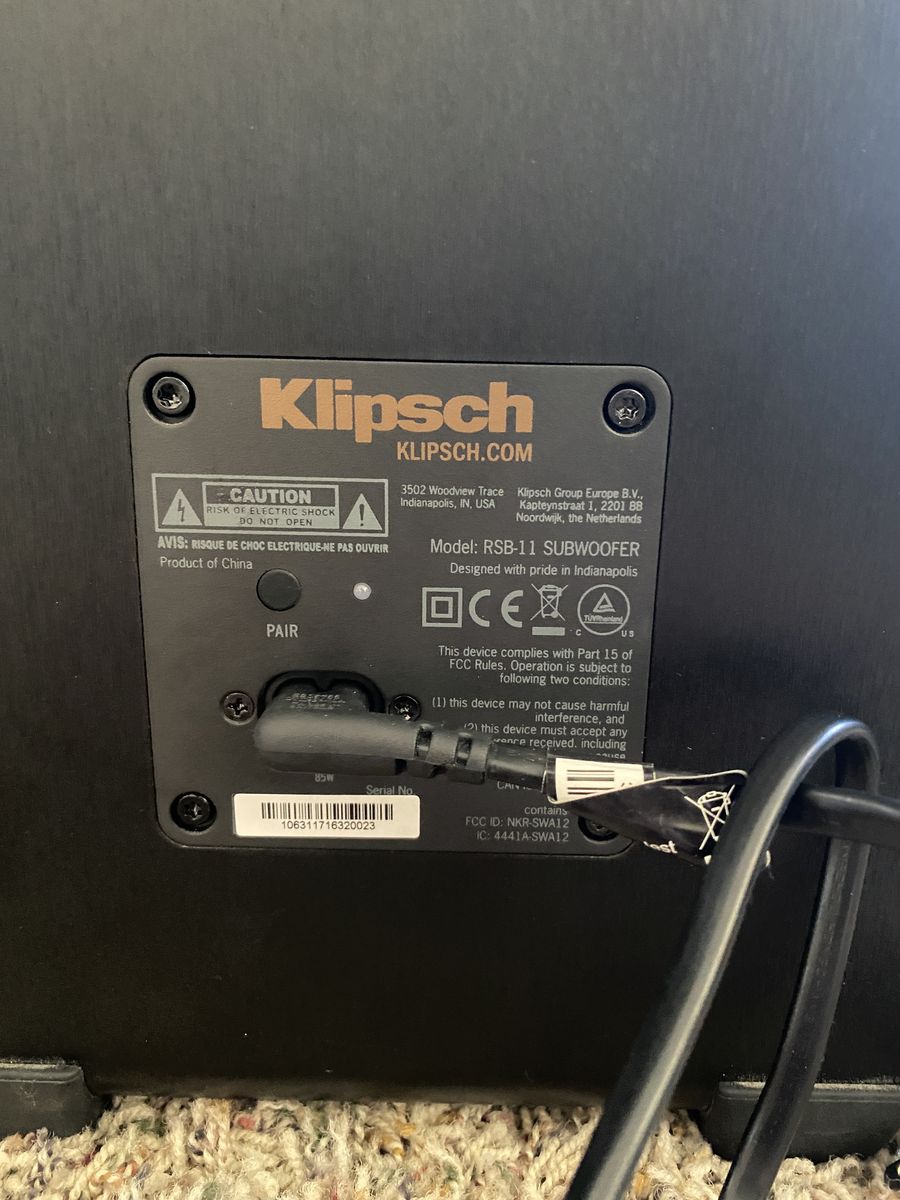 Selling a Klipsch RSB-11 Subwoofer in good condition. Fully functional and powers on with no issues.