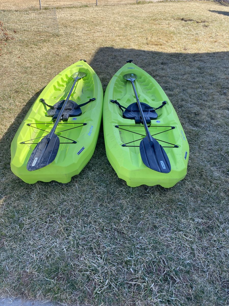 Two Rafts for $350 or one for $175. They are about 8 foot long with the paddles being about 86 inch long. They have only been used once but we are trying to move cross country so we are trying to lighten the load. They priced really well so please no low ball offers.