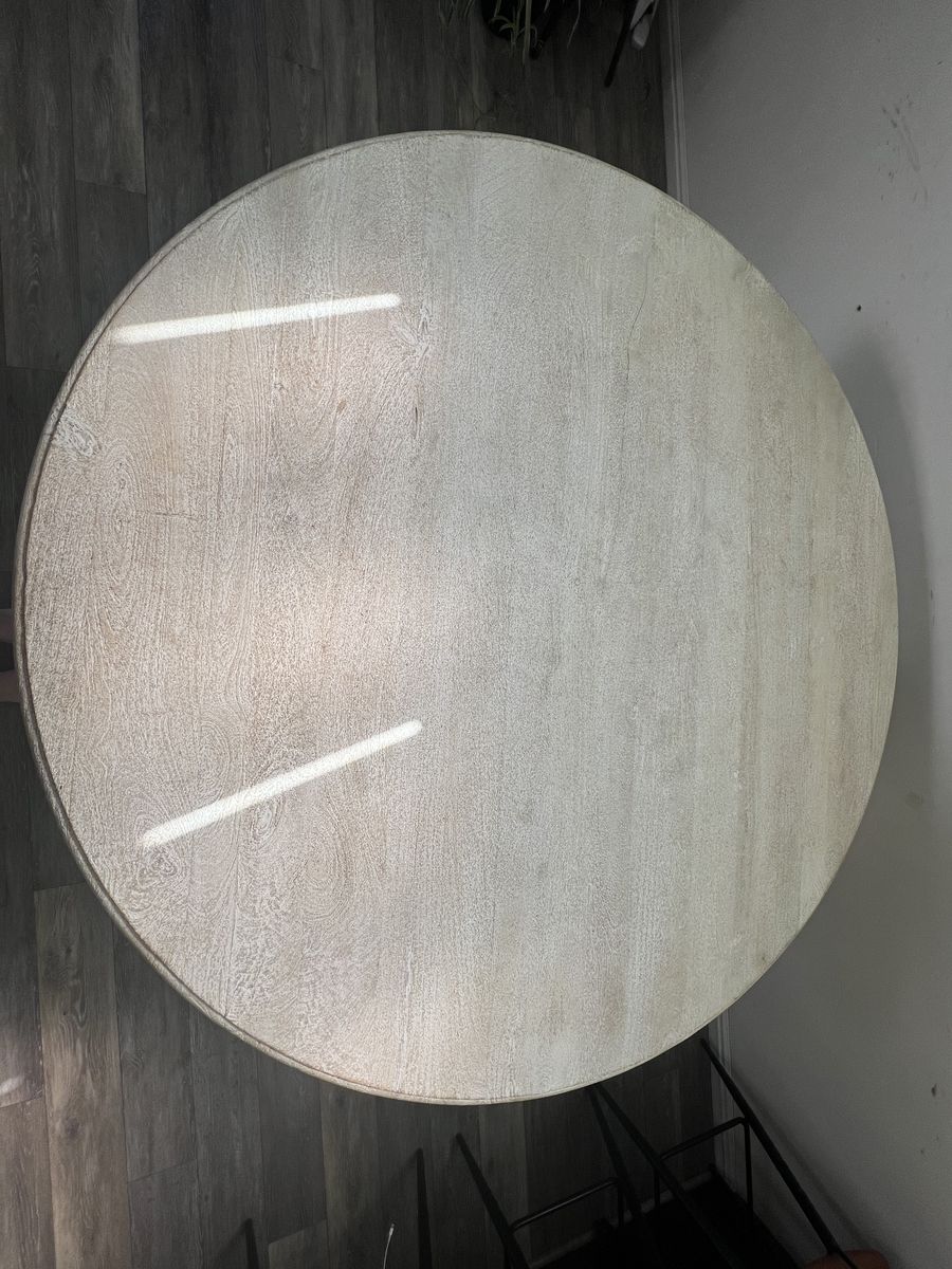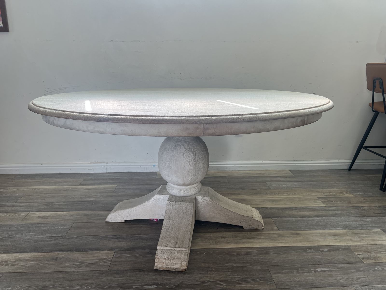 ApplePayBeautiful 60” round pedestal dining table. Seats 4–6 comfortably and works great in a kitchen or dining space.