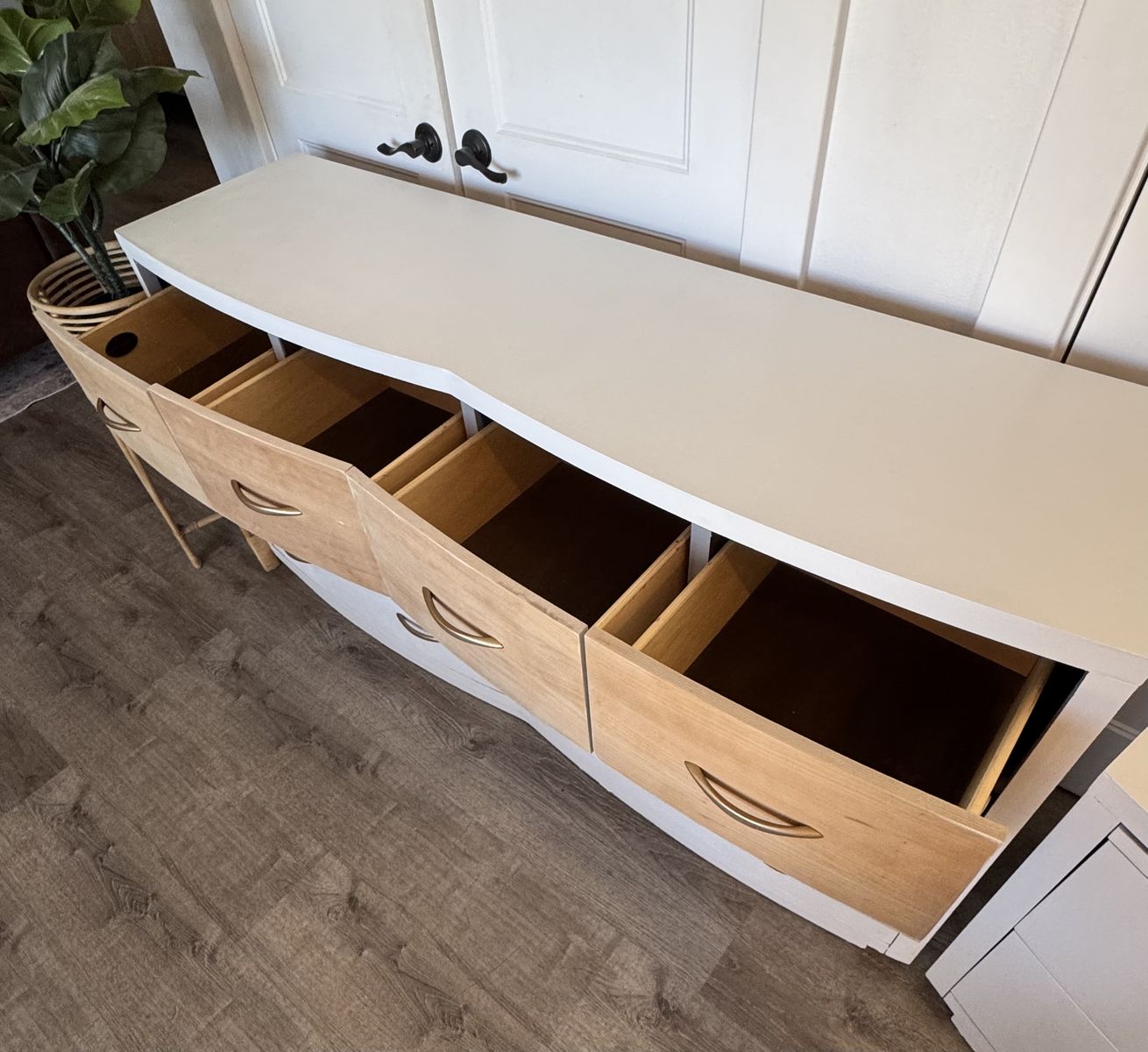 VenmoSelling this set because it is too big for my daughter's room. It is a very solid set made of real wood. It is made by Kathy Ireland Home Furniture. All of the drawers open and close smoothly on tracks. The drawers all have stoppers on them so they don't pull all the way out. Will need 2 strong people to lift. It is heavy!