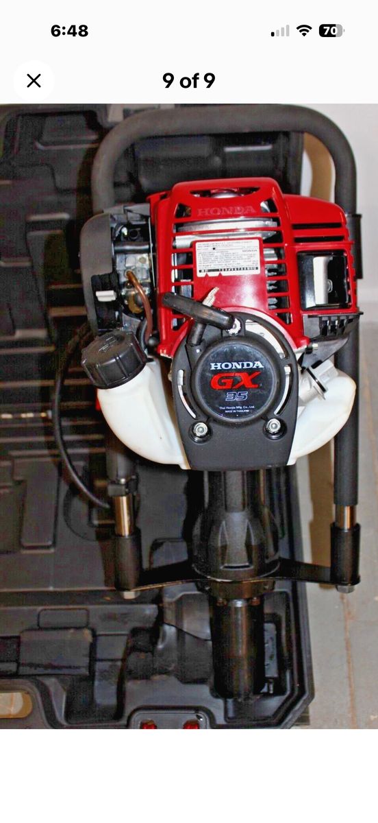 Thor Gas-Powered Tent Stake and Post Driver. This lightweight and portable device offers a powerful option for driving tent stakes, t-posts and other 2.5 diameter and lower pipes for posts. It offers easy starting and high fuel efficiency, with no hoses and few moving parts. It has a modular design that features air cushion dampening that prevents virtually all recoil. The powerful Honda 4-cycle motor can be easily replaced or serviced with low-cost repairs, making this one of the lowest cost of ownership models on the market today. It comes with a sturdy wheeled carrying case to make transport to and from jobs a snap.