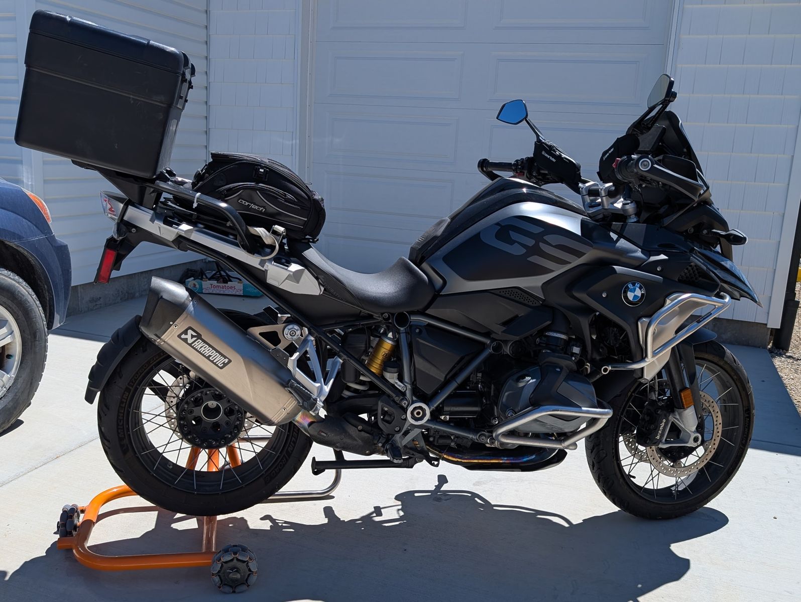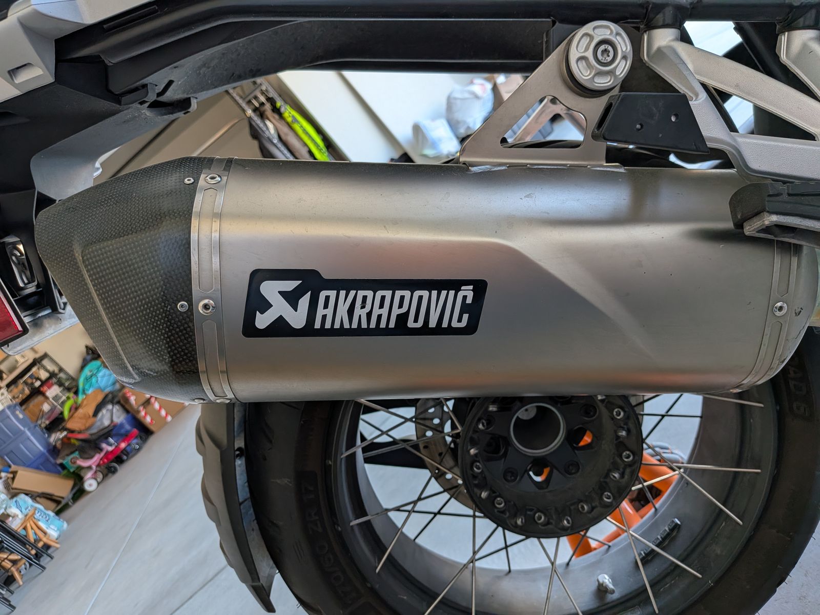 The Akrapovic exhaust sounds awesome and gives a touch more power. Full-body crash bars help protect the bike in the event of a tip-over.