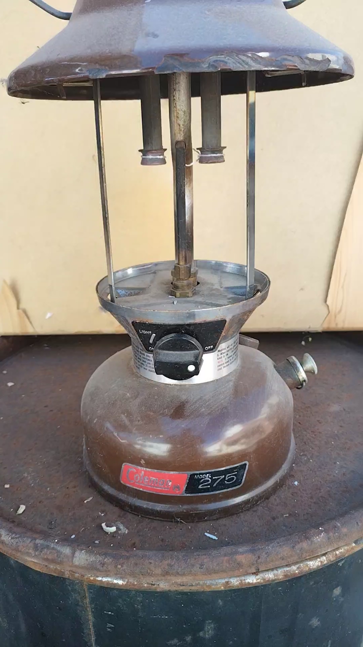 This is in excellent condition, tank is full of Kerosene, I don't have the mesh that goes with it for lighting, but everything works fantastic. The mesh was old and I discarded it