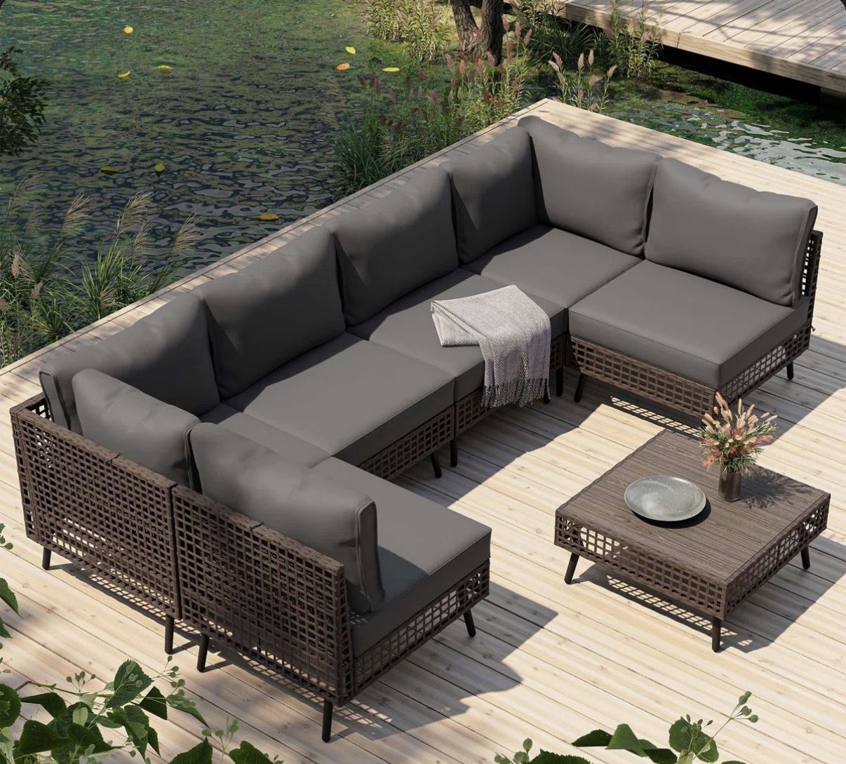 ApplePayNew 6 Person Premium Wicker Patio Sectional Seating with Cushions and Coffee Table.