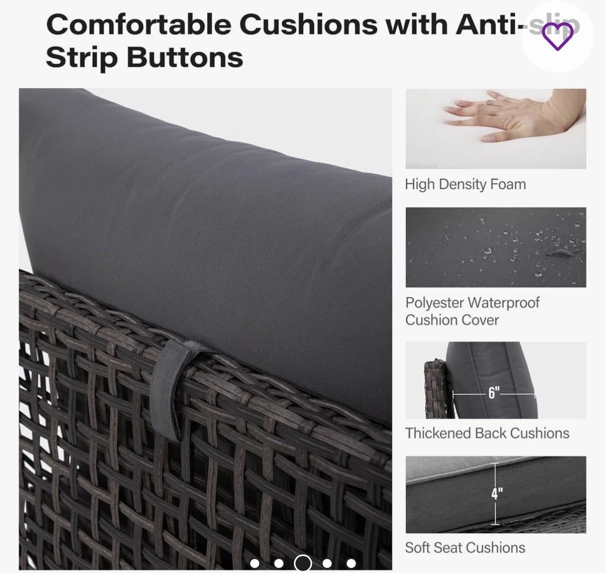 Brand: Alcott Hill Color: Gray/Dark Gray Condition: Never been out of box. Some rain damage done to boxes ONLY, as they were outside during a rain storm, but the patio furniture it self has NO damage done especially considering it's also wrapped in plastic. Also patio furniture is water repellent, and weather-resistant