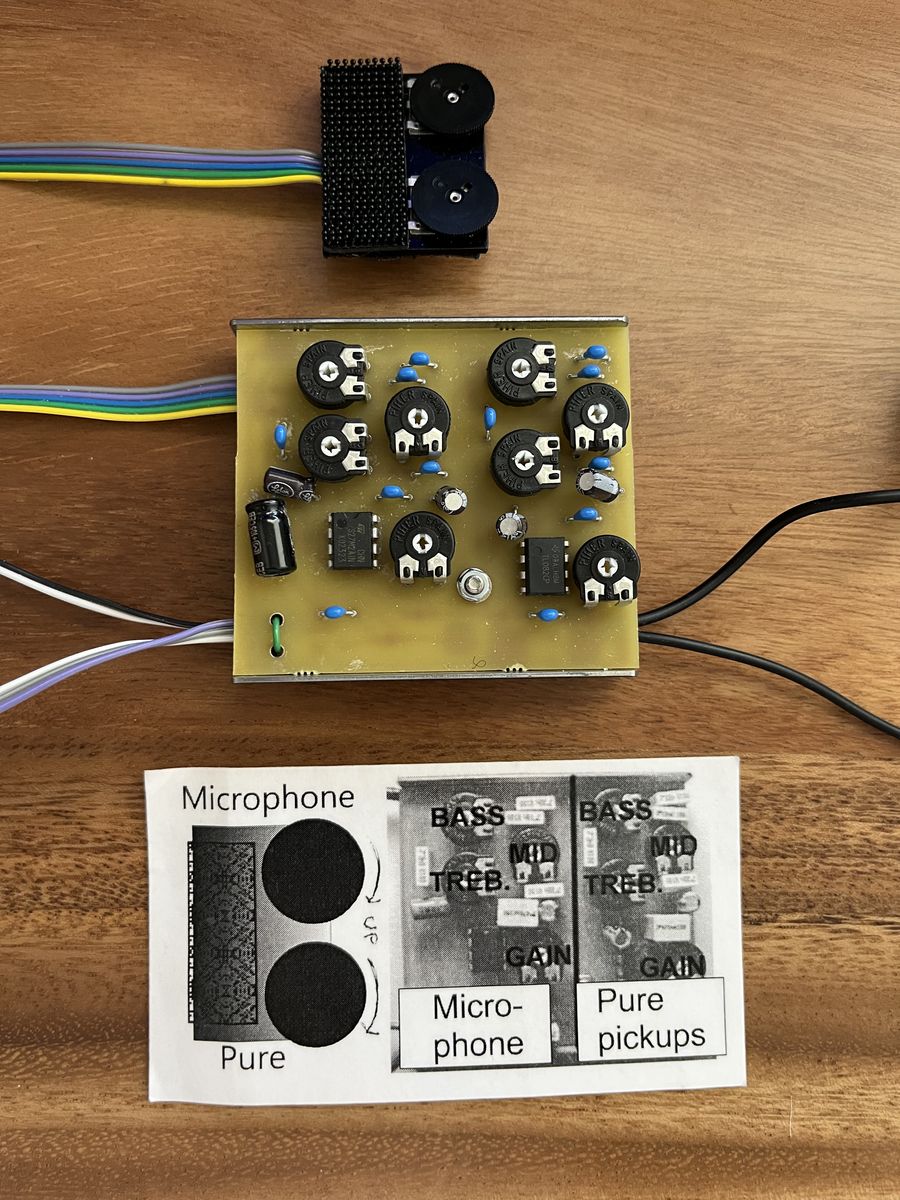 This is a custom made-to-order onboard Trinity System from K&K for acoustic guitars and similar stringed instruments. It's exactly the same as the regular Trinity system, except with a preamp made to go inside the instrument and a single mono output jack.