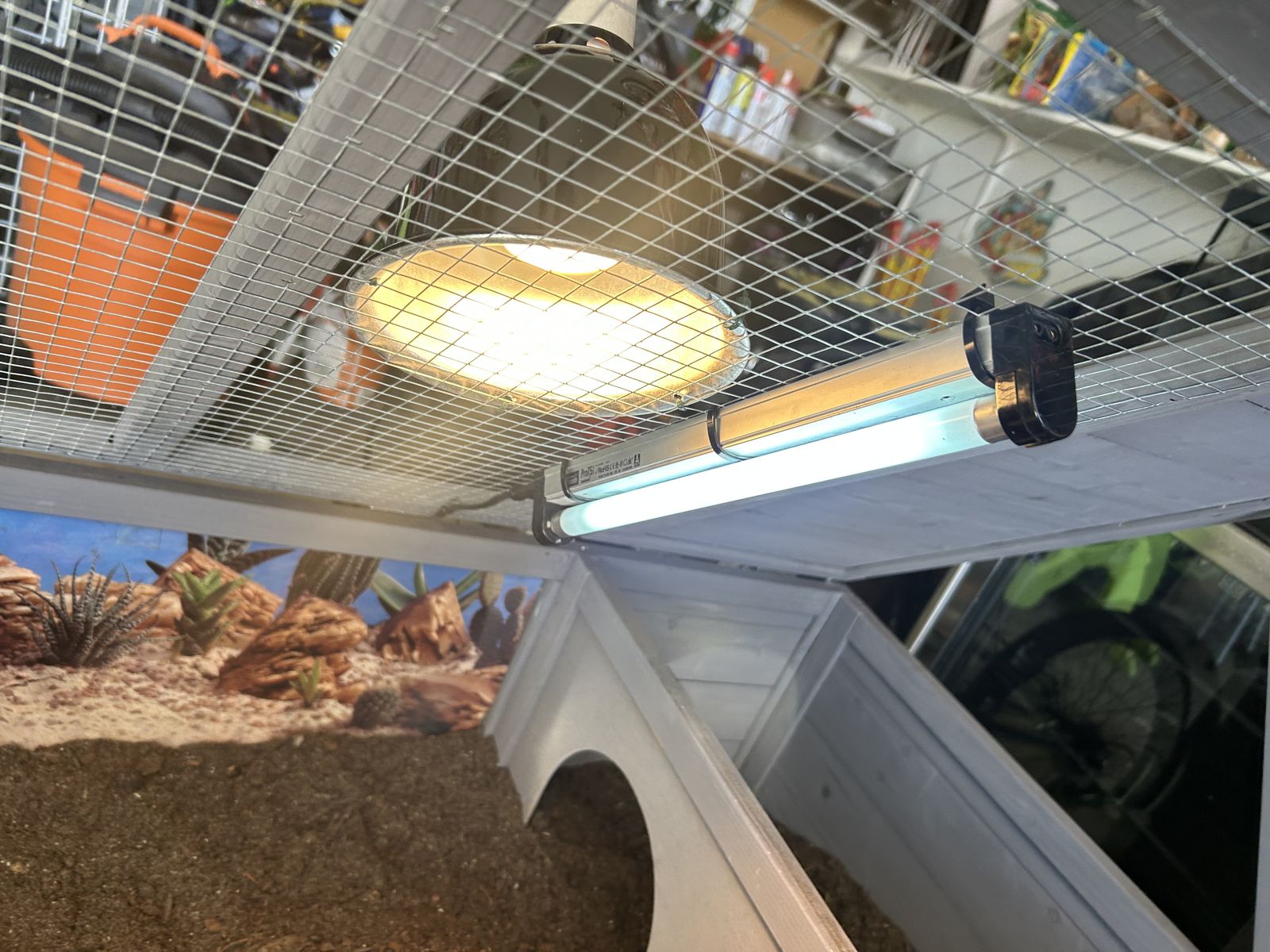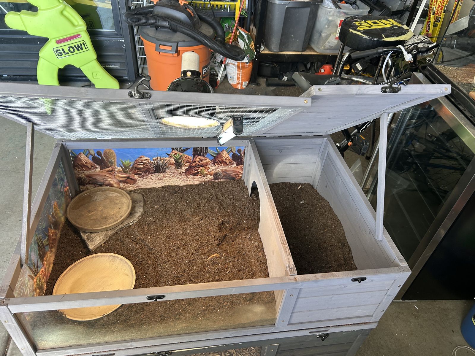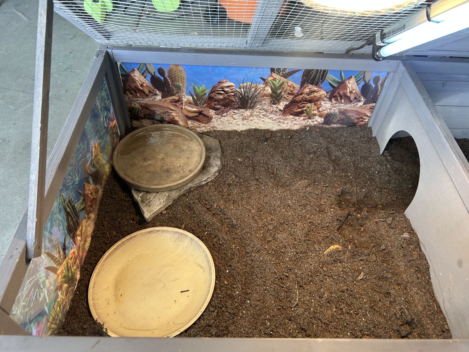 ApplePayComplete tortoise set up! With new substrate,new uvb lamp and bulb, basking lamp with basking bulb, water food bowls,slate rock, and has been wrapped with desert background. All you need is your pet tortoise with this kit. Please text if interested