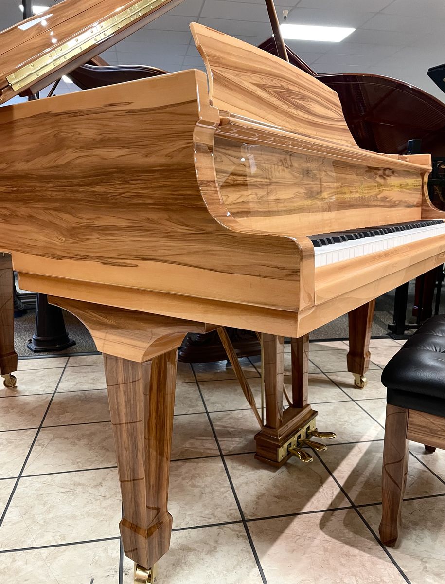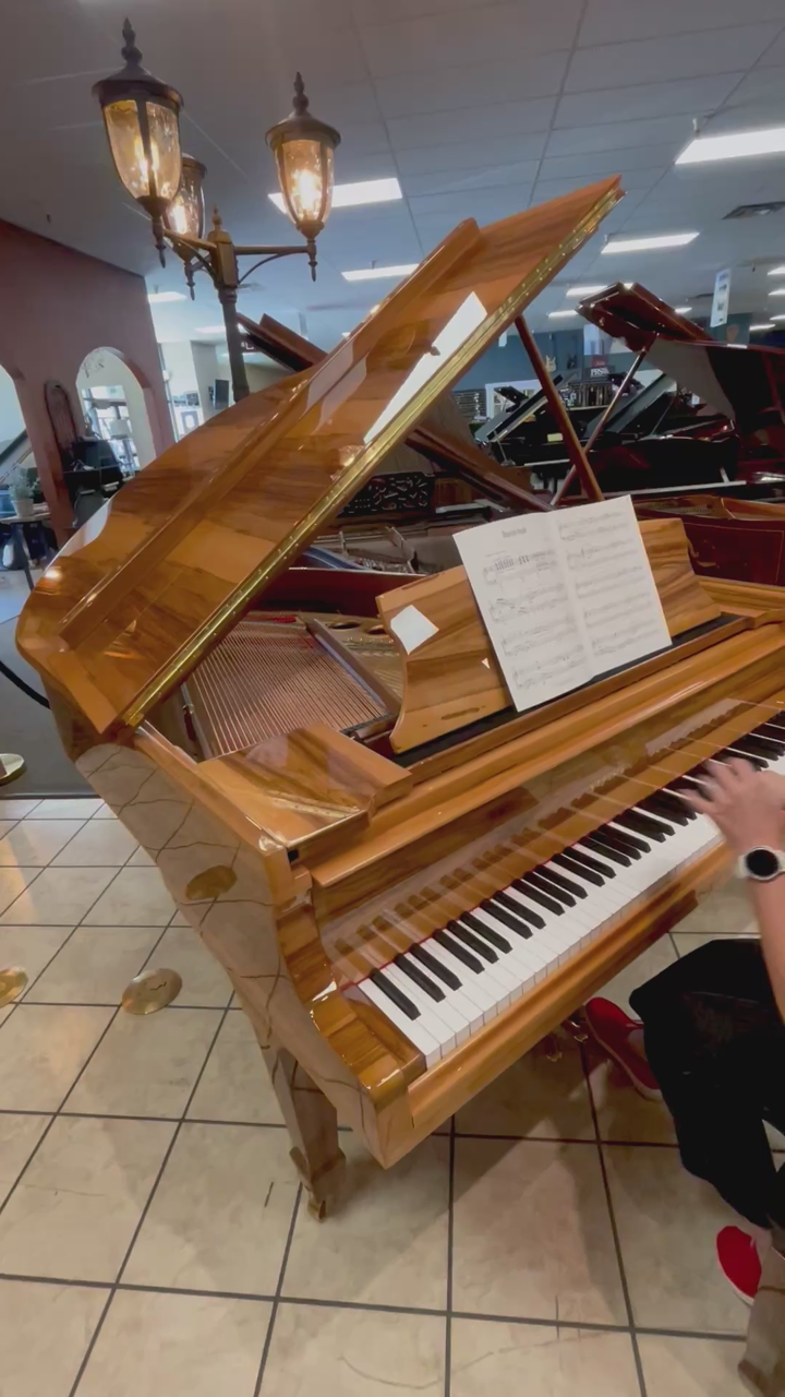Featured here: the Steinway & Sons Model O (1906) in rare Amberwood veneer, fully restored in 2025. The warm, natural grain displays distinctive stripes and speckles, creating a one-of-a-kind, glowing appearance that enhances the piano’s renowned tone and responsive touch. Measuring 5' 10¾", this elegant grand offers classic Steinway power and projection in a size ideal for homes, studios, or intimate performance spaces.