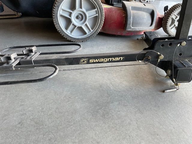 Venmothis is a swagman bicycle carrier that mounts on a hitch or has an adapter to mount on an RV bumper. Carries two bikes. Dusty from being in my shed but only used once. Seems like the original cost was over $250