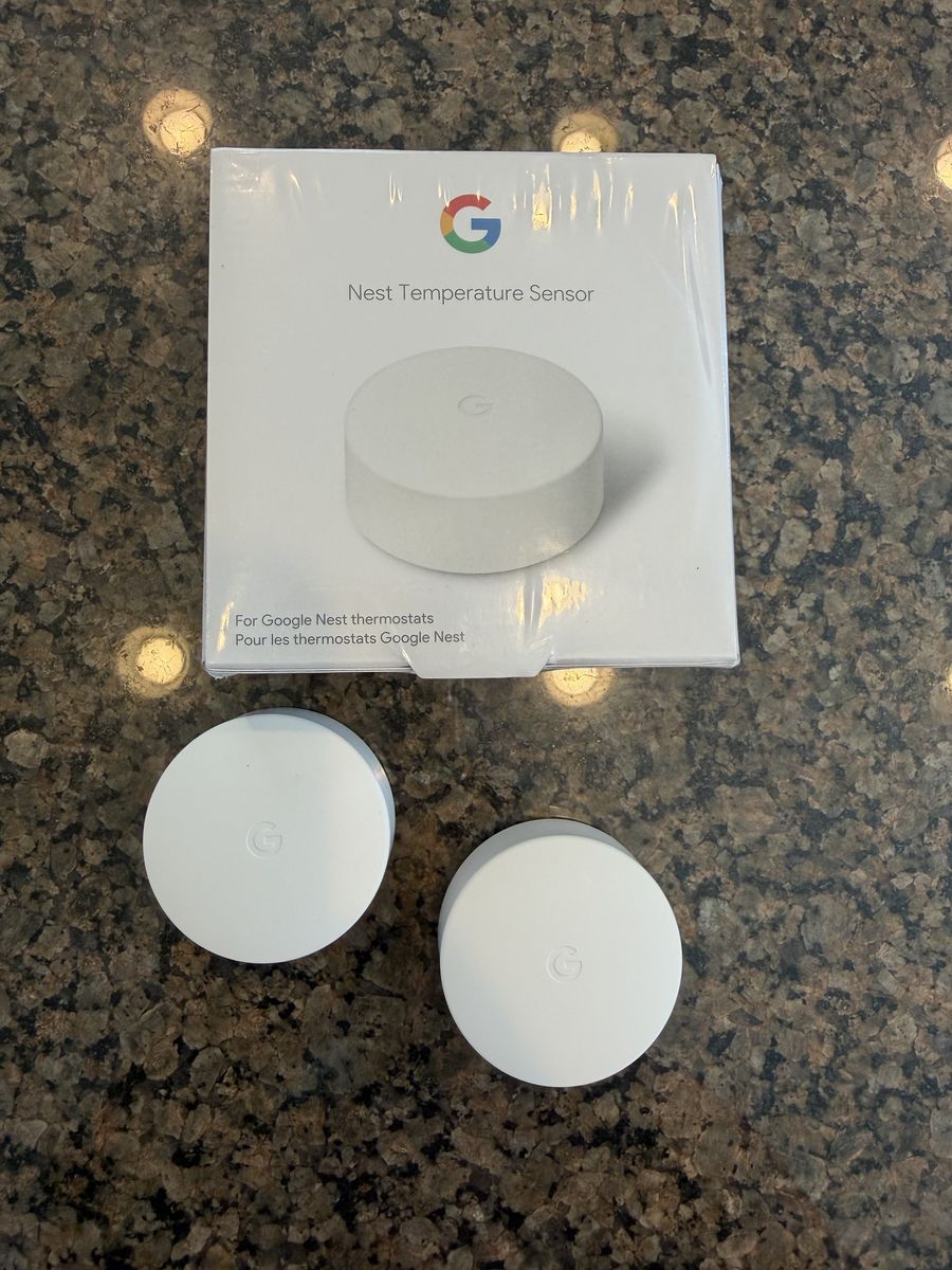 ApplePaySet of 3 Google Nest Temperature Sensors in excellent condition. Perfect for balancing temperatures throughout your home by letting your Nest thermostat read temps from multiple rooms.\