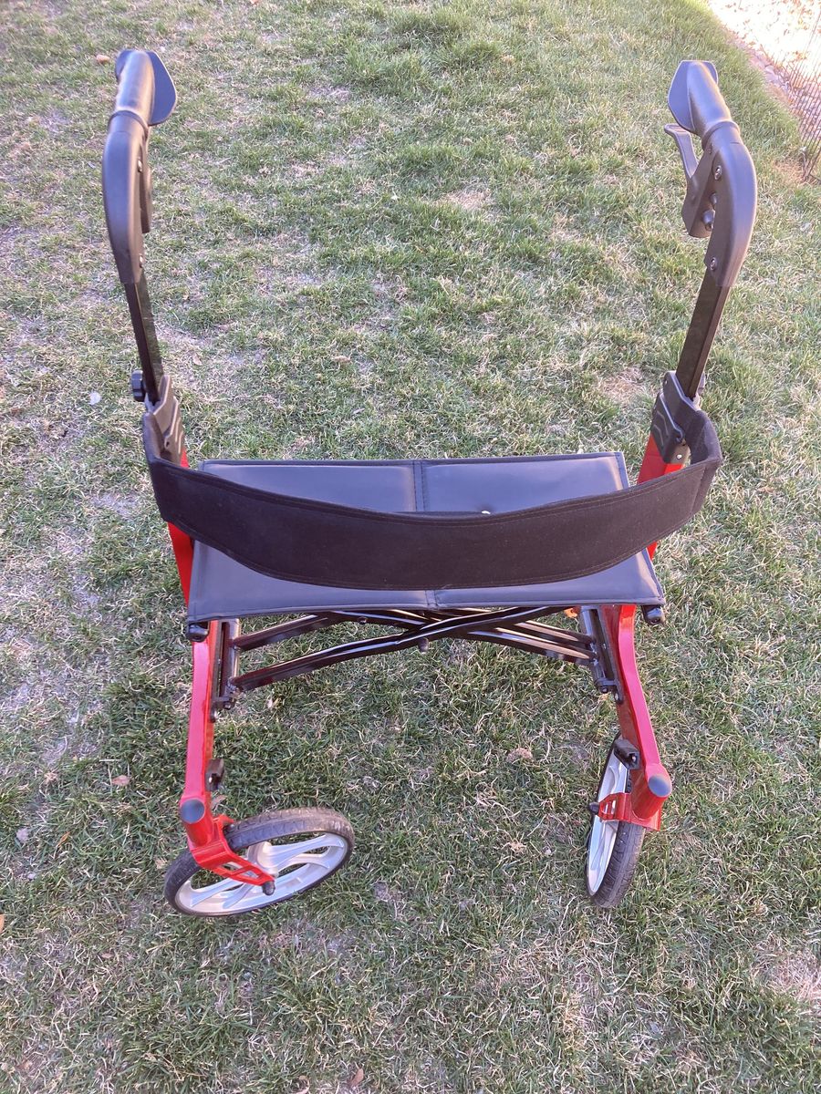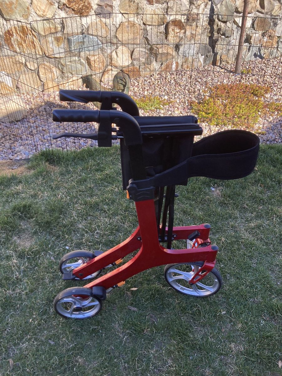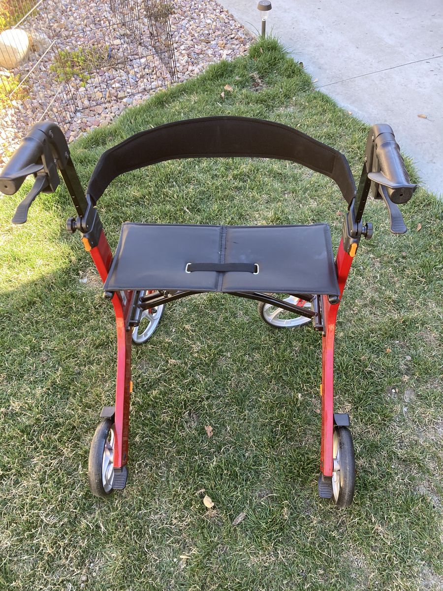 Equate Heavy Duty (up to 350 lbs.) 4 Wheeled Rollator Walker (all terrain) with brakes and 20 inch seat in excellent condition.
