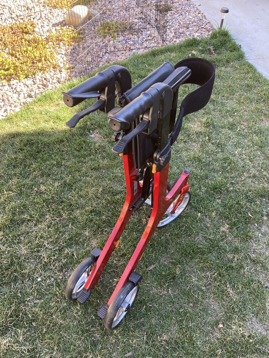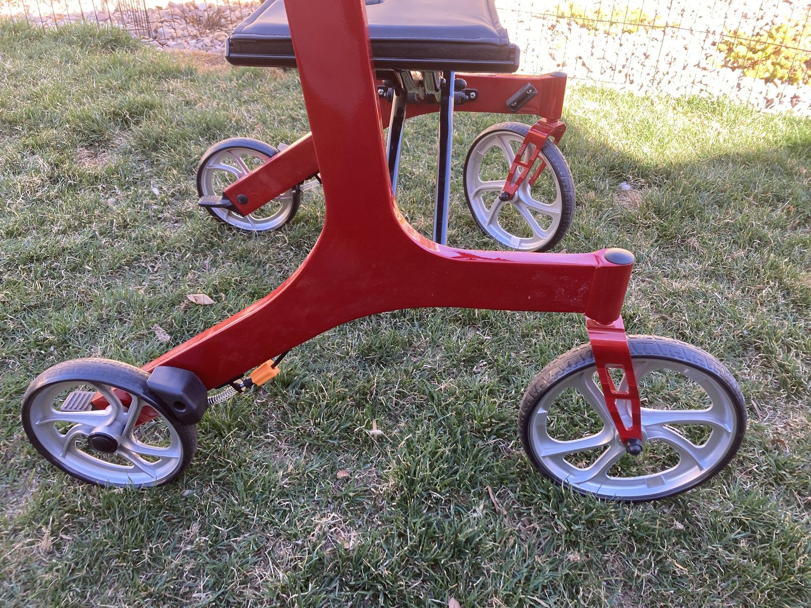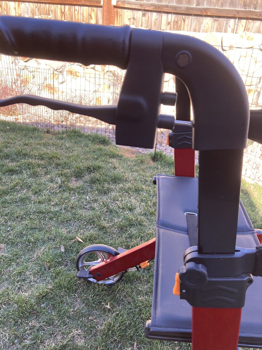 Equate Heavy Duty (up to 350 lbs.) 4 Wheeled Rollator Walker (all terrain) with brakes and 20 inch seat in excellent condition.