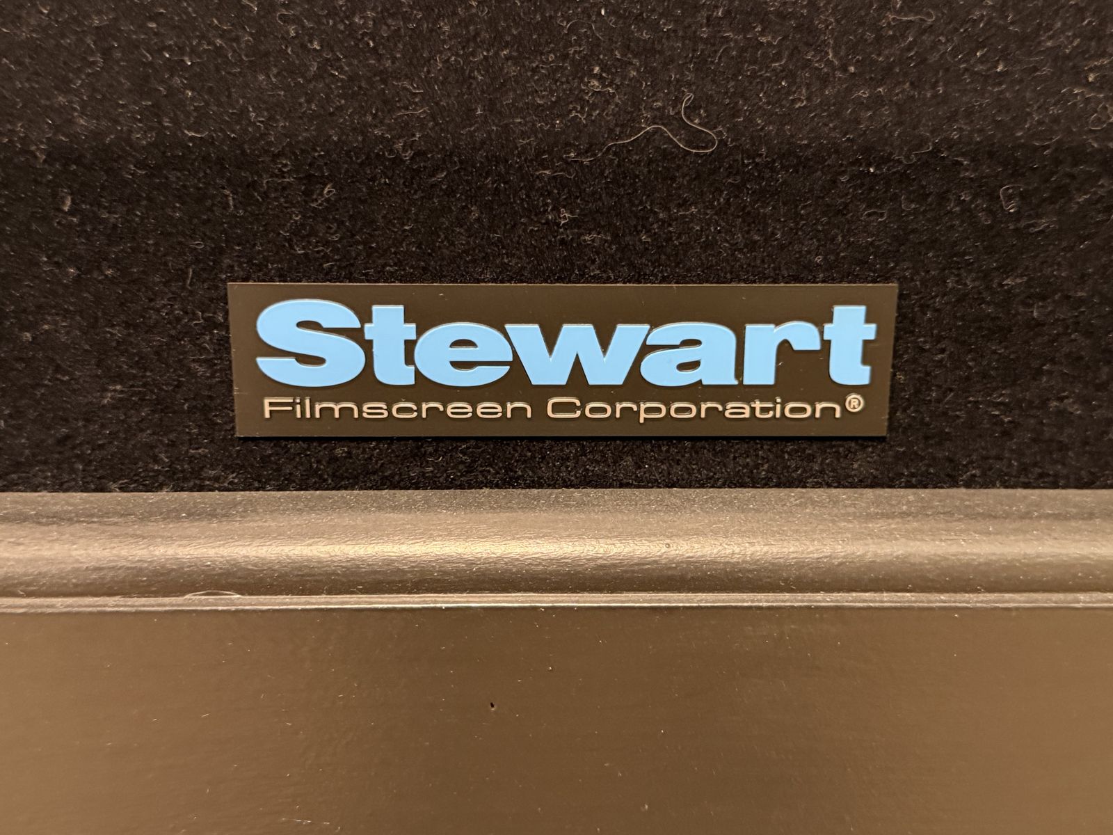 This is a high contrast Grayhawk model of the Stewart Filmscreen for a home theater projector system.