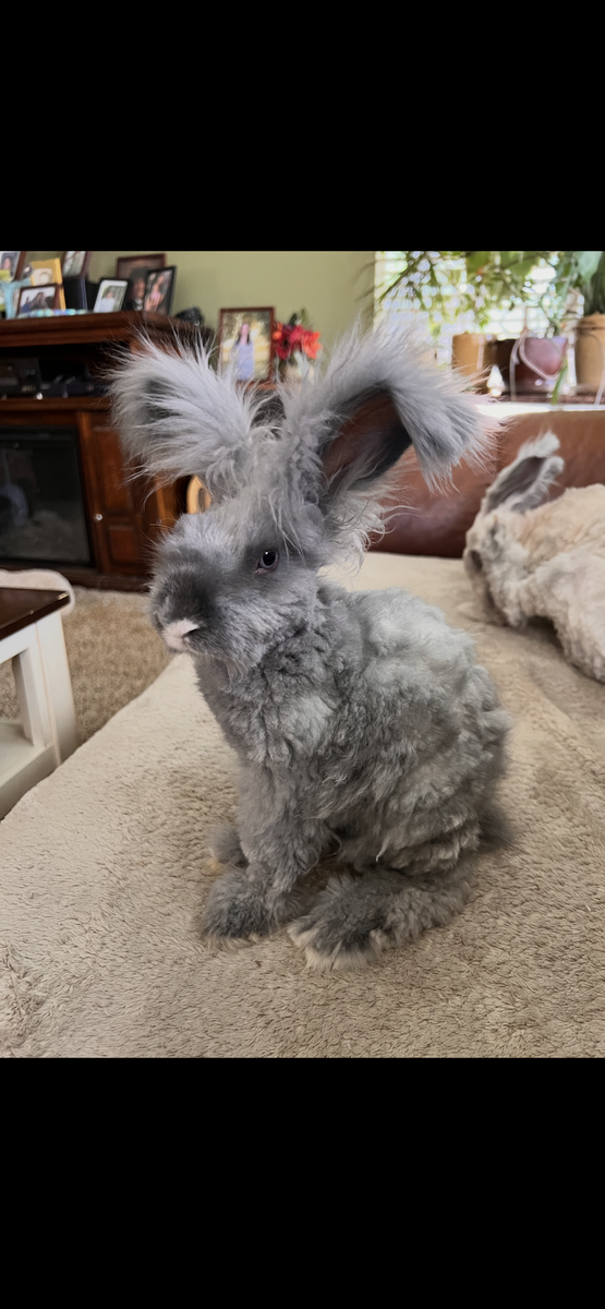 This sweet, handsome boy is a Vienna Marked, blue-eyed, self blue, purebred pedigreed proven buck—and he is just as special as his name.