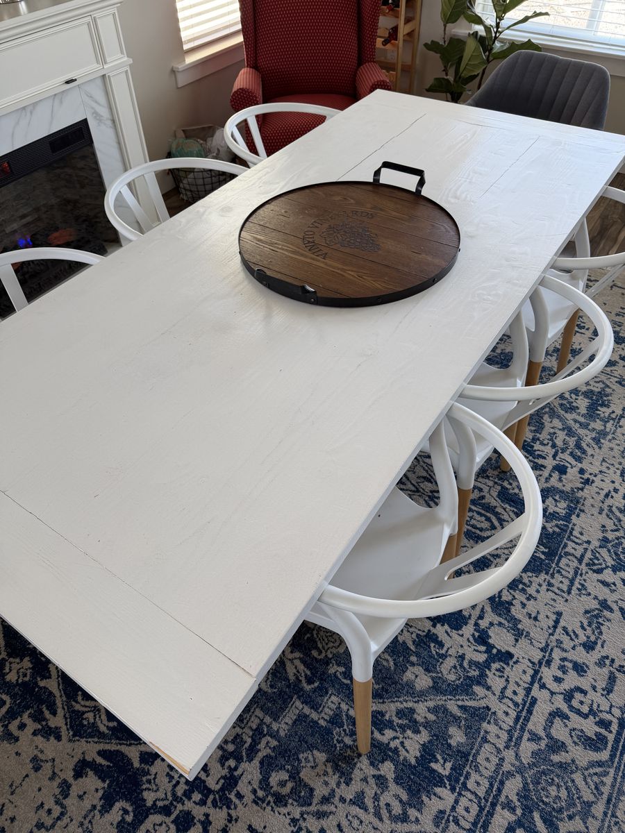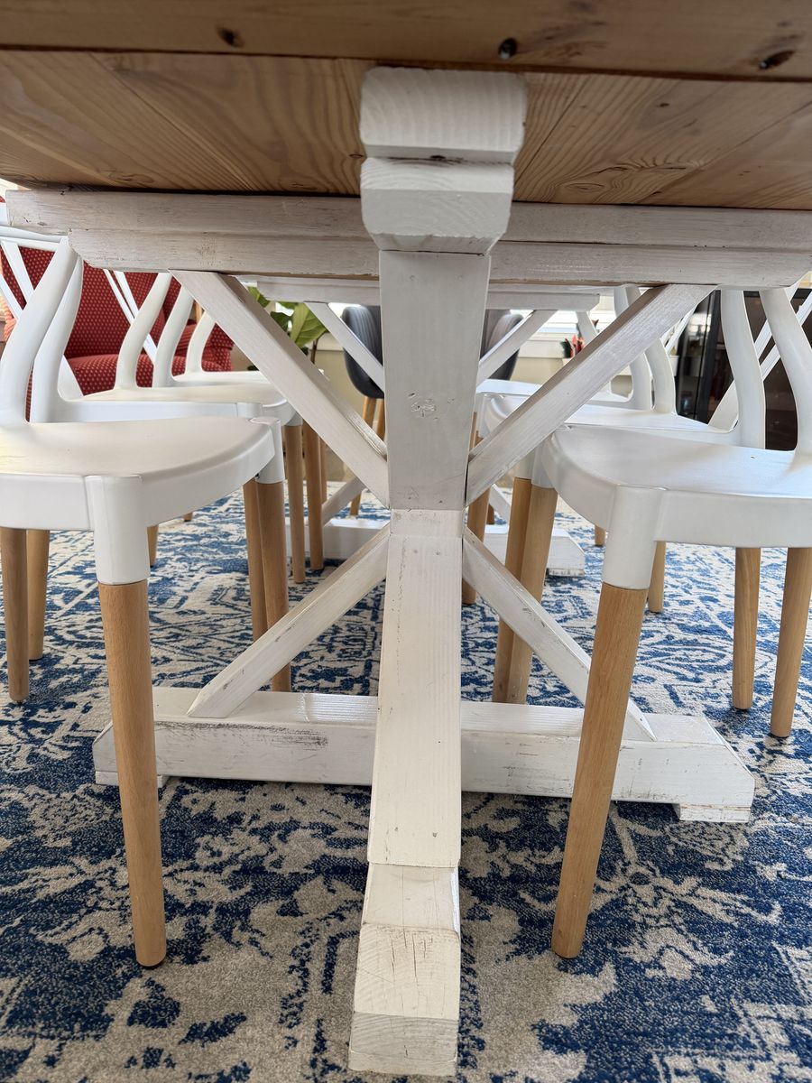 ApplePaySolid wood custom dining table. 6’11.5” long, 3’1” wide, 2’6” high. Very heavy. Must pick up.
