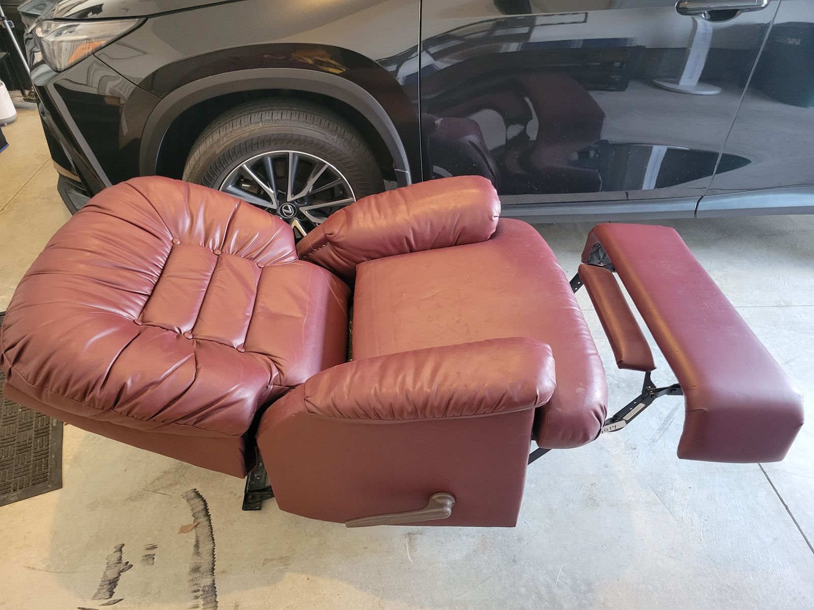 • Reclines smoothly and functions properly • Thick padded cushions for back and arms • Wide seat – very comfortable • Durable frame and mechanism