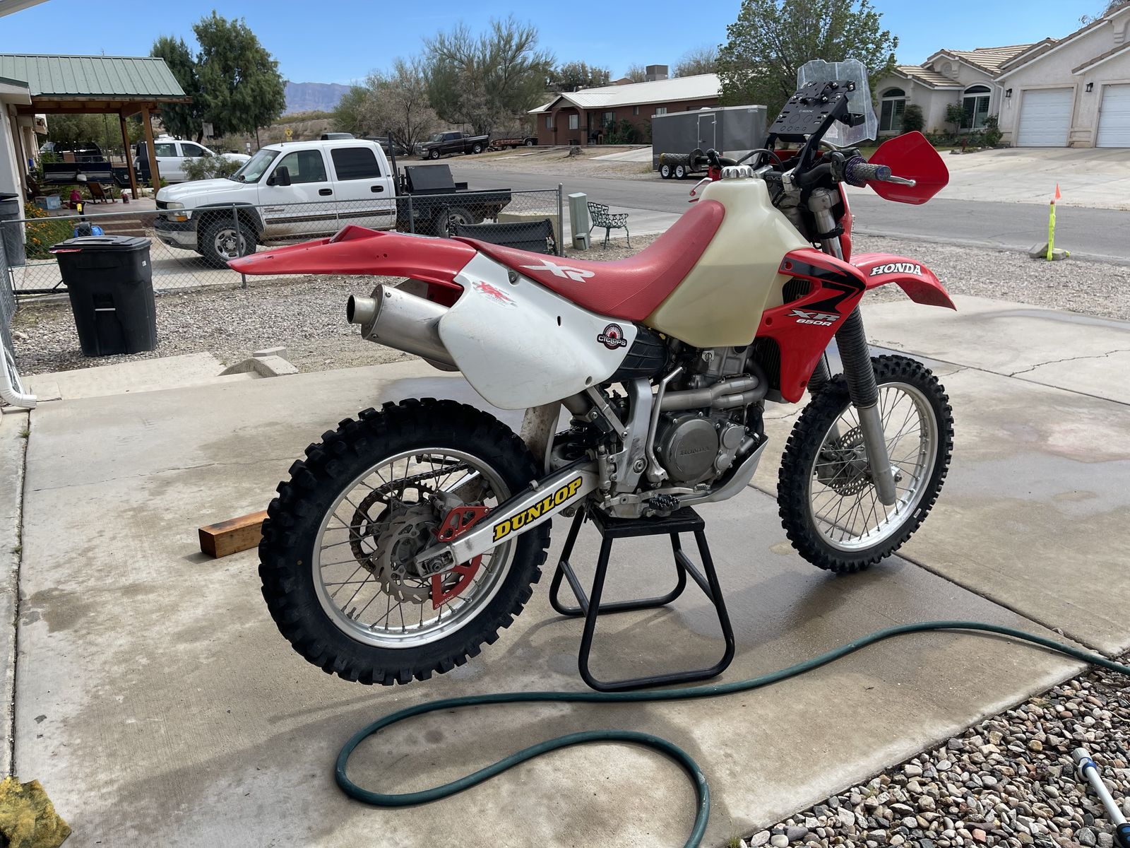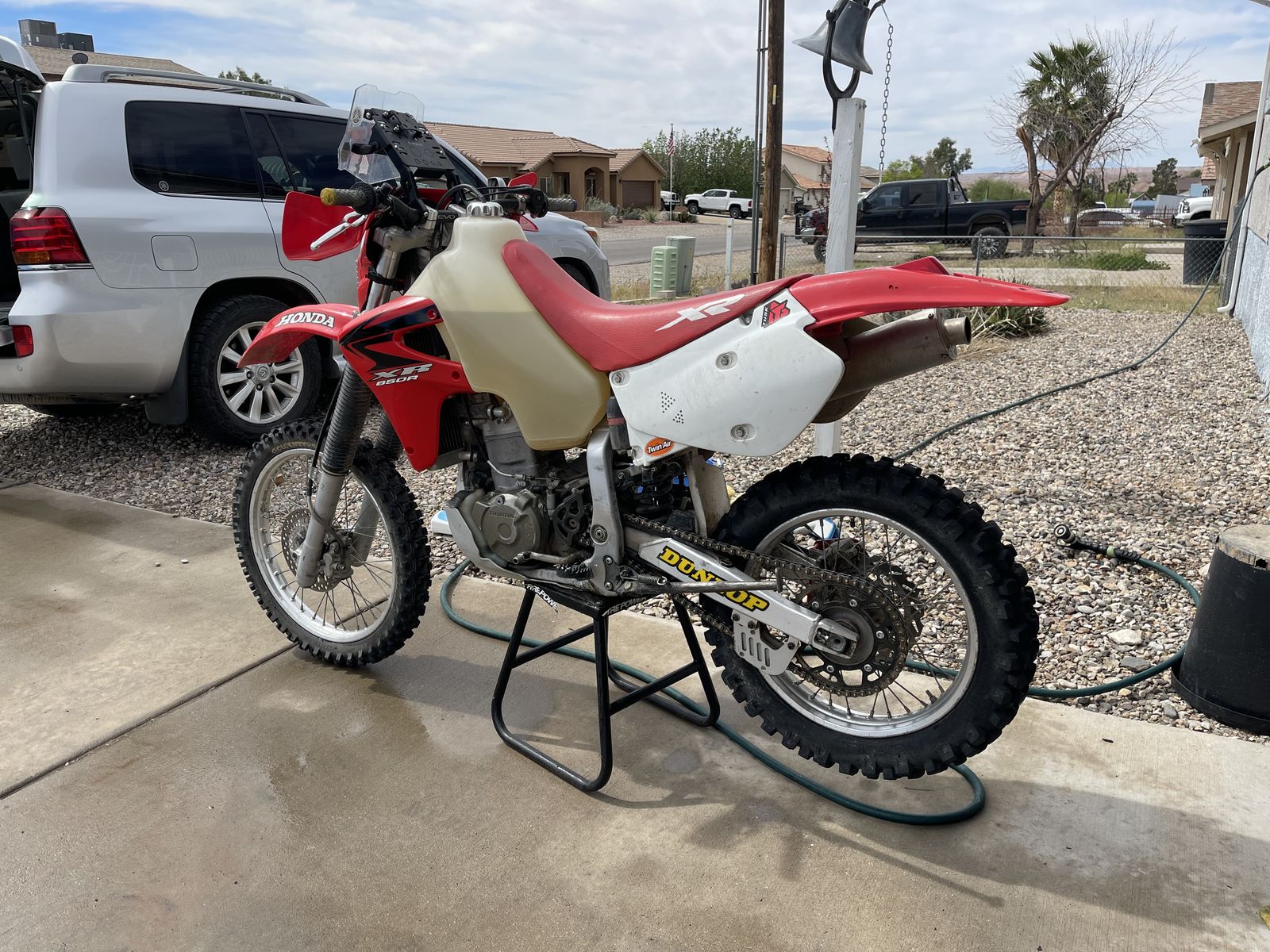 Great bike only selling to get a tenere, pretty new tires, mini fairing / rally tower, suspension done up by the xr specialists precision concepts in california. Kick start of course, after the initial start when it is warm it starts first kick, a little cold blooded takes about 3 kicks in the morning. Used it for commuting and riding in the desert never raced. Not sure of the miles as it does not have a odometer, headlight is a LED cyclops bulb which works great, newer radiator shoruds, no leaks, Clarke long range tank (has the same fuel range as a tenere 700.) Aftermarket exhaust that is a bit rough but works fine and sounds pretty good, has a ton of power and is as fast or faster than a 450, super stable at high speeds.