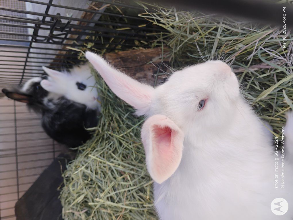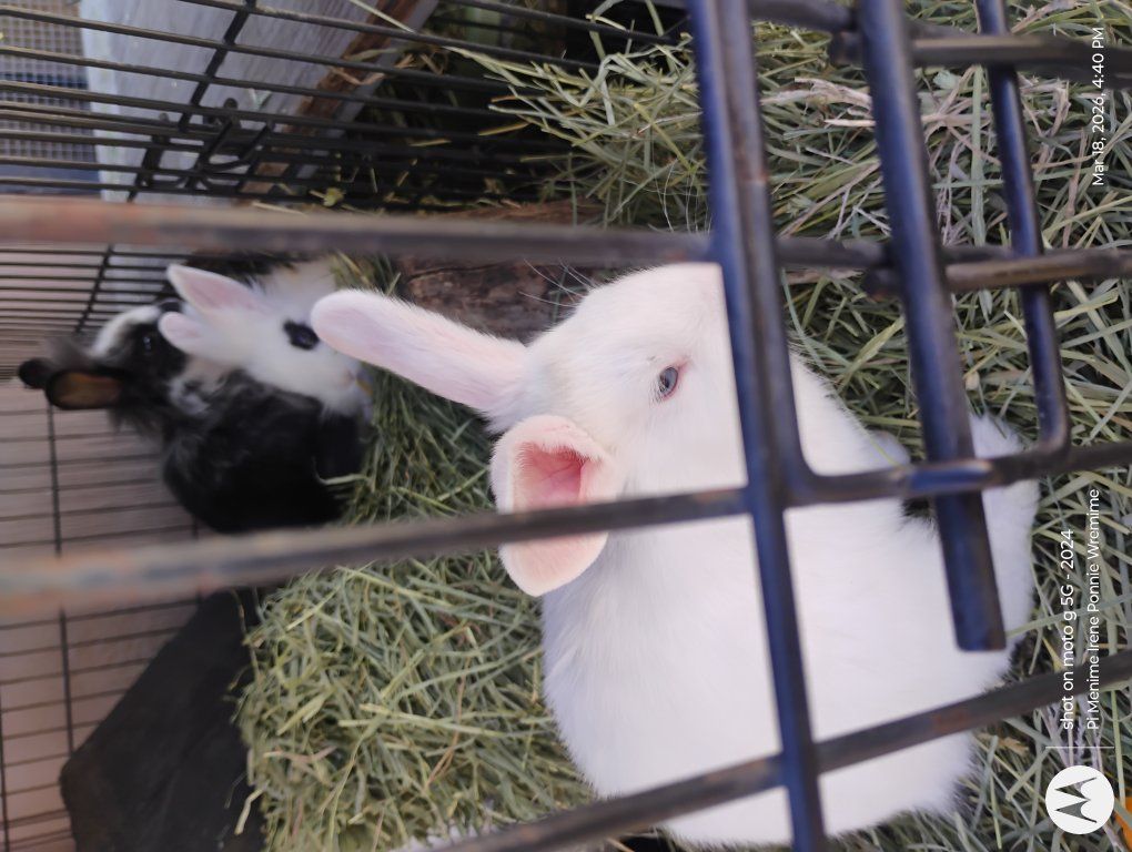 3 white girls (cutie pies)/CC for coca cola possibly a boy maybe girl, Snow White, and Fluffy(?)(/Princess Name unknown); girls. or just cutie pies (3 white buns trio) possibly girls 1 maybe a boy, need to double check black boy: Buddha Koda black and white boy: 5 (Hi5) white with shades boy: Page Cidnee white +colors boy: Spirit Spot tan boy: 2B Tobe have 2 other bunnies that are available for $36 each. one is orange and one is black with blue eyes, from a litter a little smaller and younger than the pictures here posted. have 2 more litters and 2 more pregnant bunnies. will trade bunny for cage if anybody's feeling crafty or has something up their sleeve. thanks. Sadie 385-265-9061 $75-99 obo per bunny (if you're attached to one specifically I'm more concerned with a good home the price is there because I'd like to keep them but I have to sell some of the other litters for sure if I do keep anymore. I don't have much money but will try and buy cage(s) if anyone can deliver. or trade a baby bunny. should be ready in about a week or the other litter a few more weeks out. plus 2 / orange little one & black little one with blue eyes, available now, or the 8 out of pictures here posted.