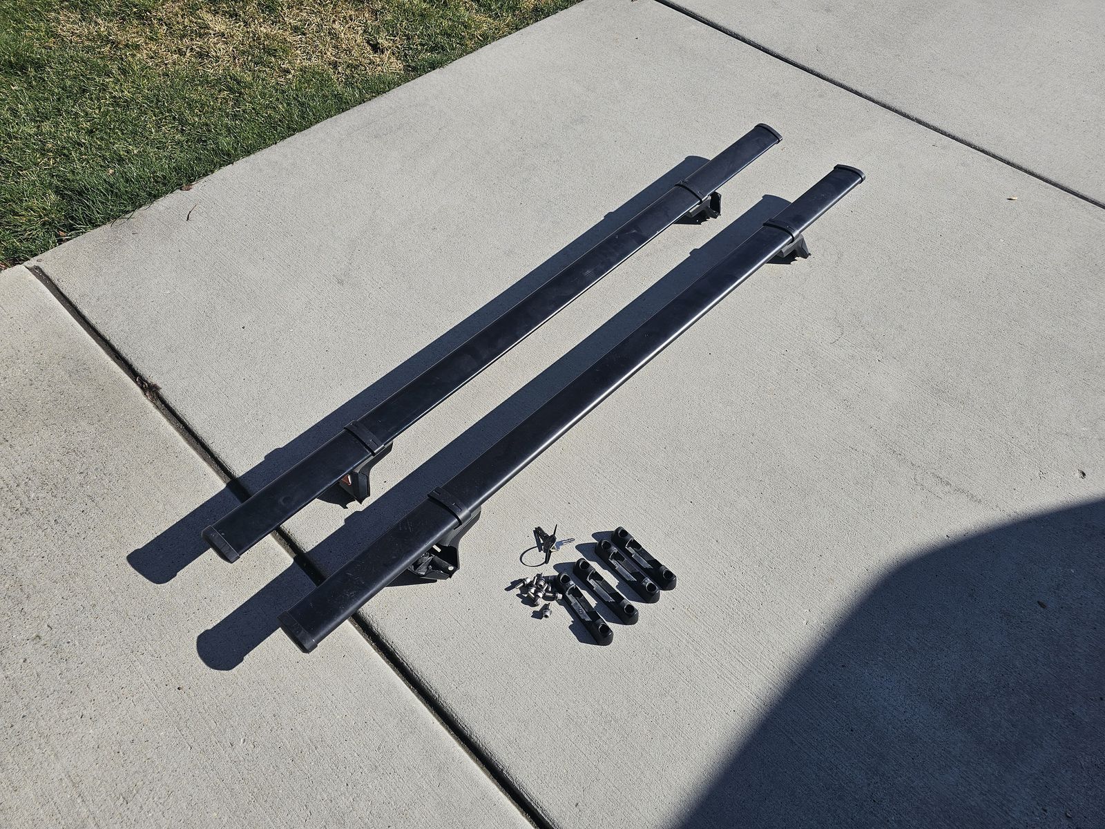 VenmoIn great shape. Used on a truck camper on a truck that I sold so no longer need. I'm sure there are other applications as well. I've included pictures of all the hardware that comes with it. I think that the only thing that is missing are the little screw plates that slide into the track if you end up using the racks on a track type roof system.