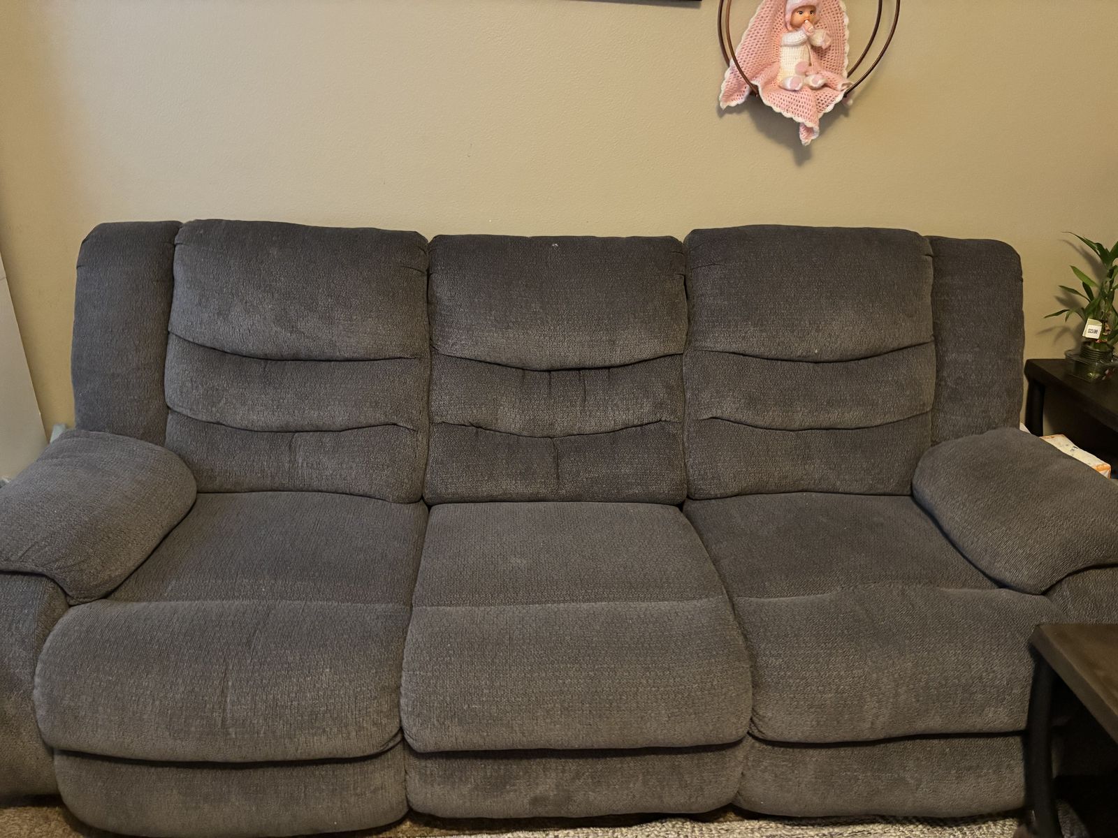 I am selling my couches in great condition I am planning on getting new ones,If u have a offer let me know,I took well care of them I would have covers over them to prevent getting dirty or stained.NO pets have been on them and there smoke free. They also recline as well!Very comfortable