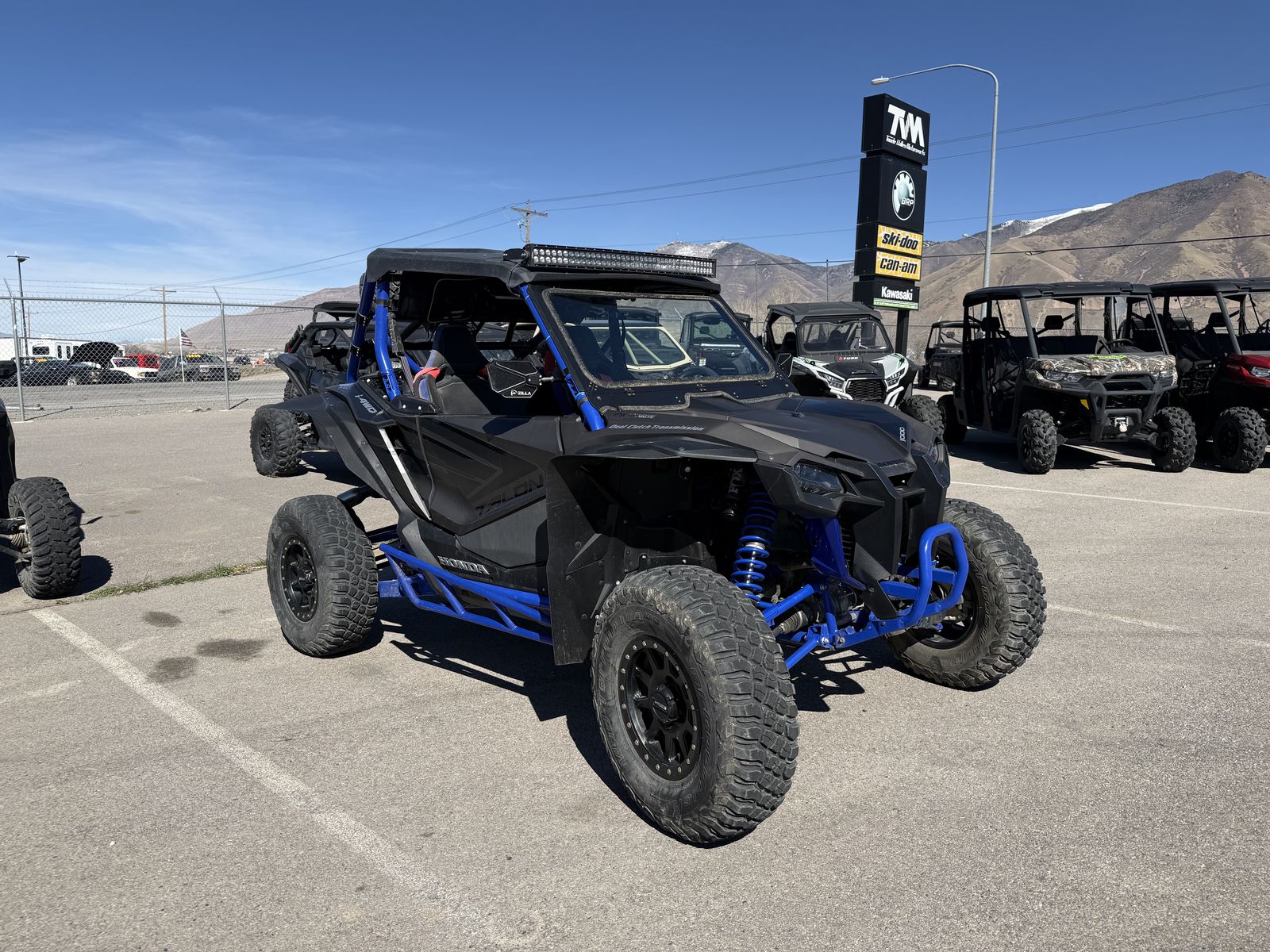 LOTS OF AFTERMARKET GOODIES! tree kickers, 15” system 3 bead lock wheels with 30” tires, light bar, rock lights, 5150 whips, spare tire mount with full size spare, glass windshield, audio roof, billet paddle shifters, billet shift gate, auxiliary battery, lower doors, rear window bags, and extended fenders. Tooele Valley Motorsports is Utah’s premier family owned and operated dealership! TOOELE VALLEY MOTORSPORTS – Call or text us @ 435-850-7618 Check us out on social media! @TooeleValleyMotorsports “Home of the Lifetime Limited Warranty” WWW.TOOELEVALLEYMOTORSPORTS.COM CHECK US OUT ON FACEBOOK AND INSTAGRAM ON SITE FINANCING OF NEW AND USED UNITS AVAILABLE OVER 500 NEW AND PRE OWNED UNITS IN STOCK We are Utah’s premier family owned and operated powersports dealer! At TVM we are riders and enthusiasts of the products we sell! If you are looking for a truly unique dealership experience that offers you a complete package, we are your team! !!LIFETIME WARRANTY ON ALMOST ALL NEW AND PRE-OWNED INVENTORY!! Price as shown does not include: government fees, sales tax, freight, setup, or any other applicable fees or aftermarket accessories (unless otherwise noted). We are a proud dealer of: Can-Am Offroad, KTM Motorcycles, Ski-Doo Snowmobile, Kawasaki, GasGas by KTM Motorcycles, Wells Cargo, Genesis Supreme RV, Heartland Torque, Genesis Overnighters, E Ride Pro, NAV by Kawasaki. We also take trade ins of the following units and many others: Polaris RZR, Polaris Ranger, Polaris General, Honda Pioneer, Honda Talon, Yamaha Rhino, Yamaha YXZ, Kawasaki Teryx, Kawasaki Mule, Can-Am Commander, Can-Am Defender, Can-Am Maverick Trail, CanAm Maverick Sport, Can Am Maverick X3, Honda, Husqvarna, Beta, Yamaha, KTM, Triumph, Suzuki, 65, 85, 110, 125, 150, 230, 250, 300, 350 and 450 motorcycles! Tooele Valley Motorsports 354 E. Cimmarron Way, Erda, Utah 84074 Dealer #387A Hours: Tuesday – Saturday 9AM – 6PM