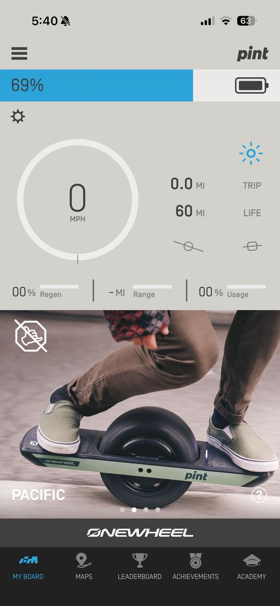 ApplePayReluctantly selling my Onewheel Pint. This thing is a blast, but I just don't have time to ride it, as evidenced by the low mileage--only 60 lifetime miles. It's in excellent condition with some minor scuffs from riding. It includes a fender and matching rail guards, handle, charging port plug, charger, and a Landslide Trunksaver car carrier.