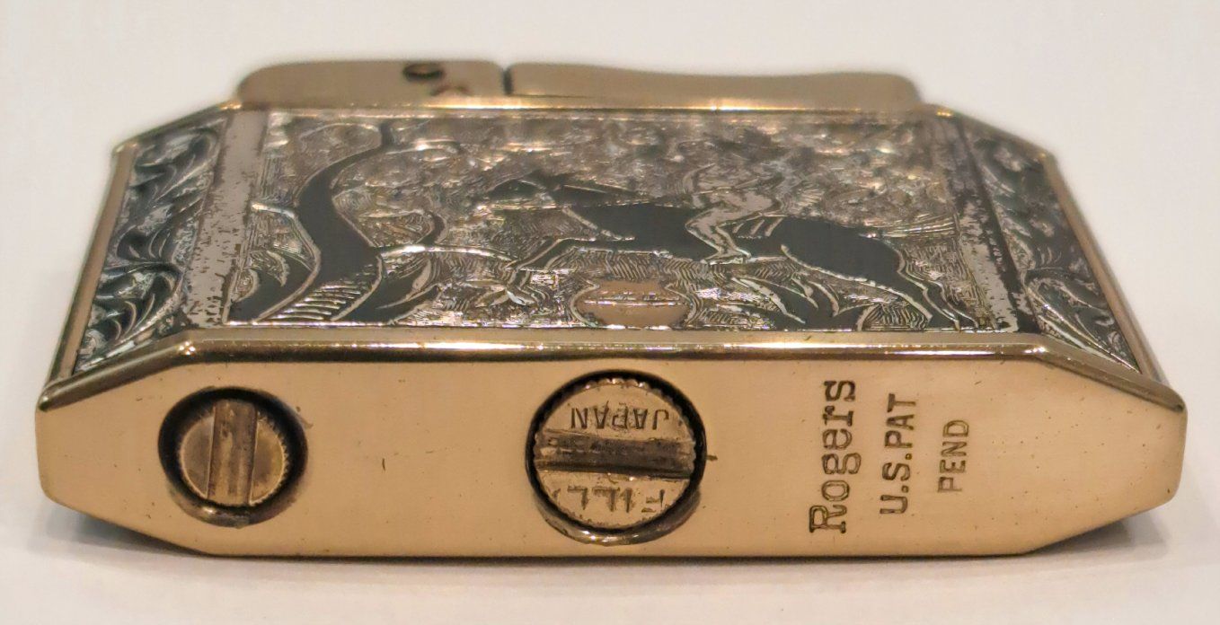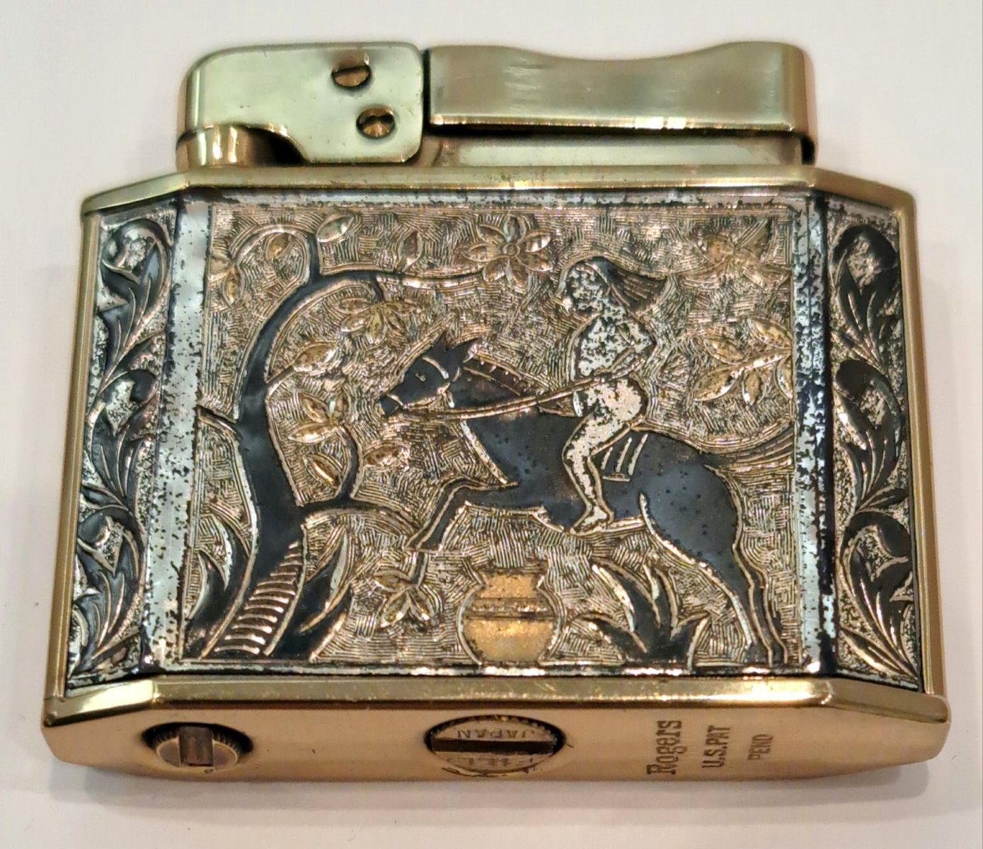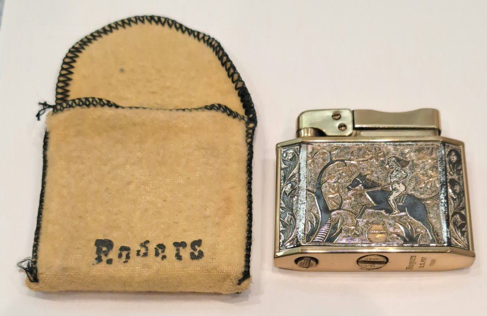 RARE 1959 ROGERS Gold/Silver "Automatic" Lighter w/Motif & Original Case. $120 Cash.