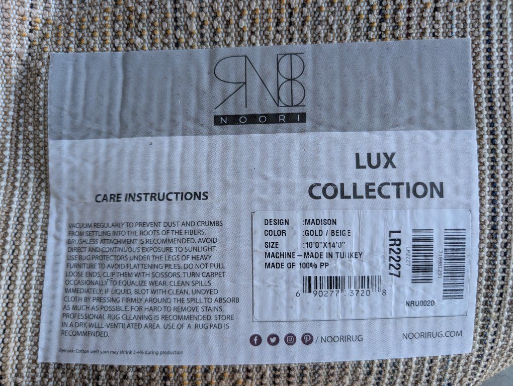 VenmoBrand new Noori Rug Lux Collection Madison Gold/Beige rug. 10ft by 14ft. Details are in the pictures. Retails for $590 plus tax and shipping. Asking $235. Text if interested 801-903-8337