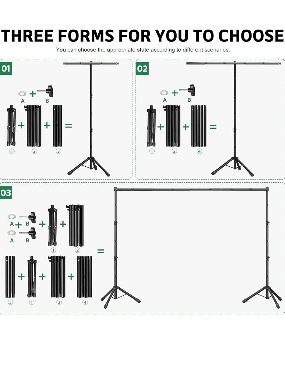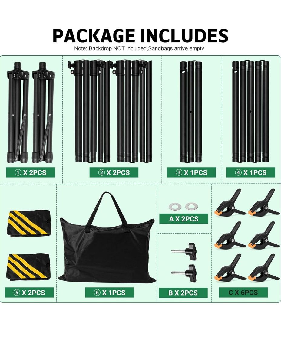 VenmoThis backdrop Stand is New in unopened box. This backdrop stand kit can be set up as a full 10x7.5ft background stand or converted into two T-shaped stands. Height adjusts from 3 to 7.5 ft and width from 3.85 to 10 ft, offering flexible setups for photography, video, events, and more. This has reinforced crossbars, matching-diameter clamps, and sturdy connectors keep backdrops secure. Designed to hold heavier fabrics and paper rolls without bending or slipping for a professional, worry-free shoot. No tools are needed to assemble or take down in under 3 minutes. Each part is clearly labeled for easy setup. Comes with a durable carry bag for convenient storage and travel-friendly portability. Heavy-duty tripod stands provide a solid base. Two included sandbags (empty) can be filled with sand or gravel to further stabilize the stand, preventing wobbling during outdoor use. All my items come from a smoke free home. Any questions please feel free to contact me.