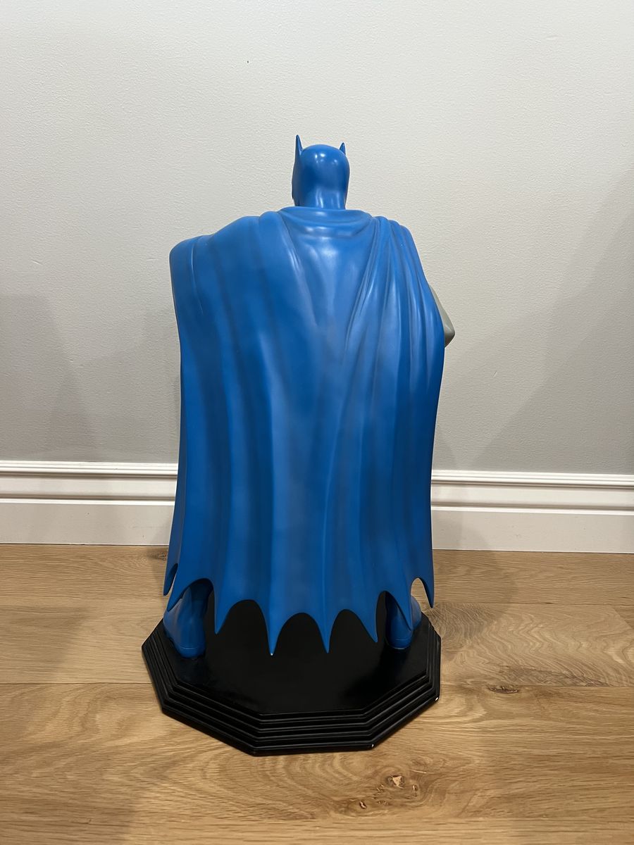 VenmoLarge collectible statue of Batman from the 1999 Warner Bros. Studio Store. This is an official licensed piece from DC Comics made of solid resin and stands roughly 24 inches tall on its base.