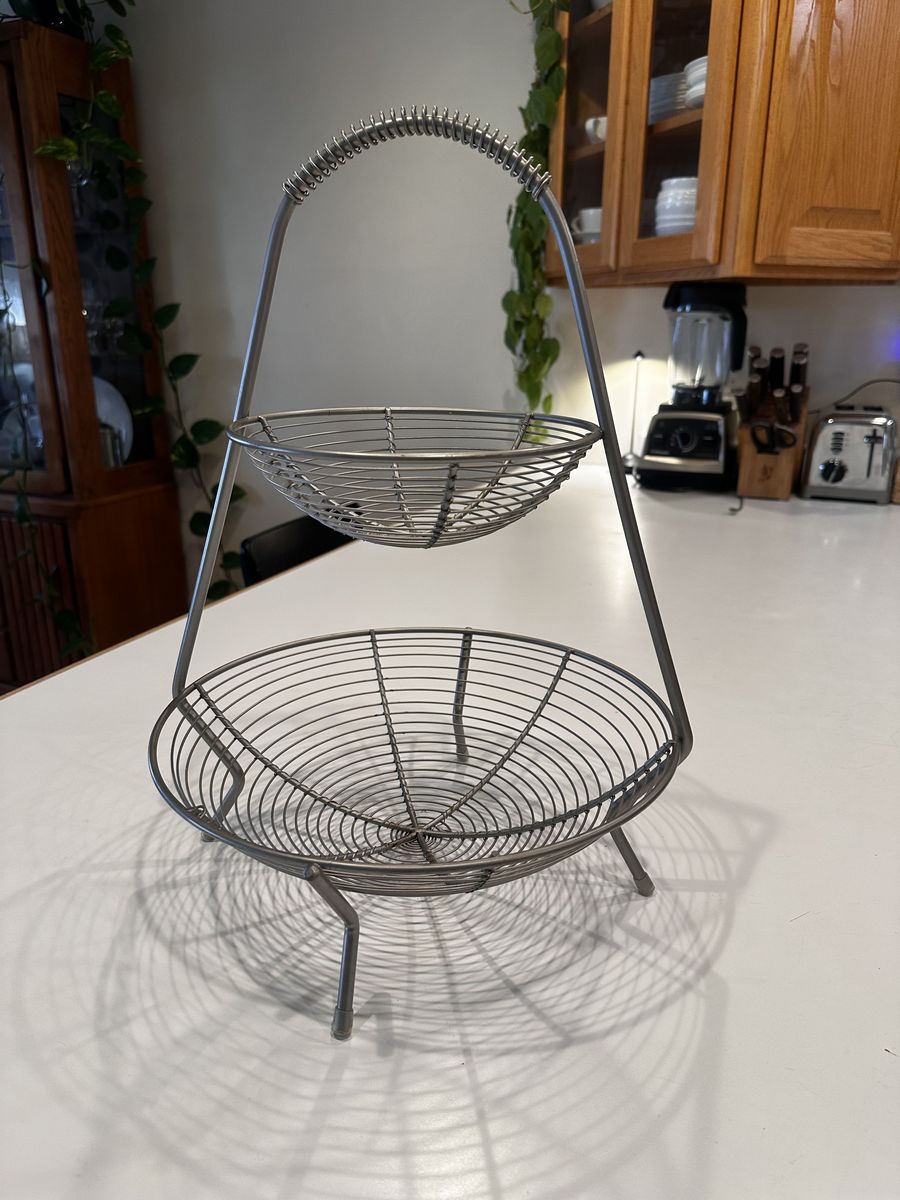 VenmoTwo-tier metal fruit basket in great condition. Sturdy and well-balanced, no wobbling.