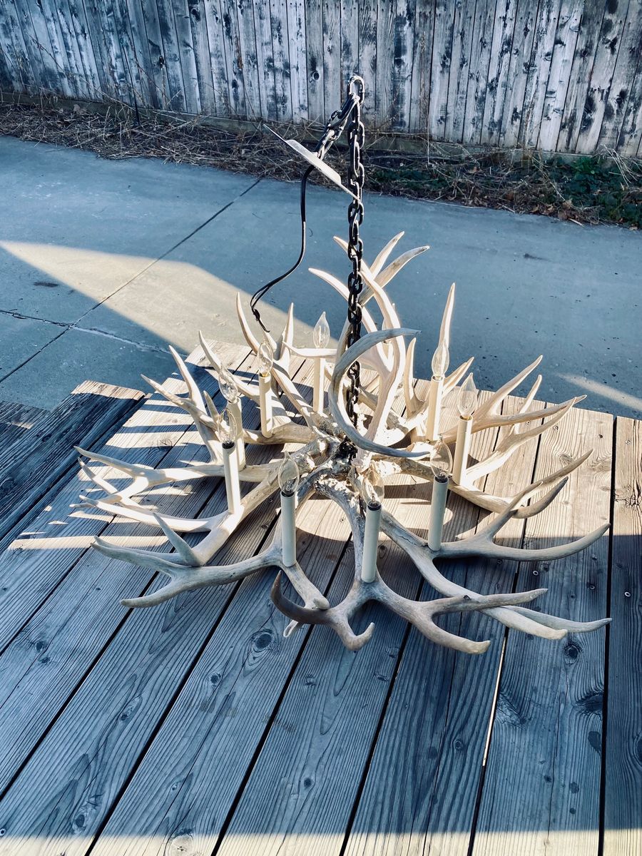 VenmoGorgeous Vintage Real 12 Shed Sun- Bleached Antler Chandelier