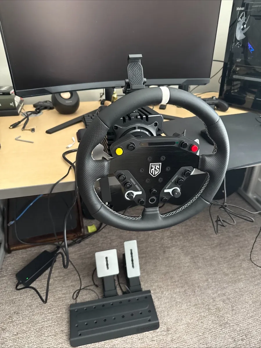 I am selling this awesome sim racing direct drive wheelbase-wheel-pedals bundle. This is a great way to get into sim racing with what is essential to get started! The bundle comes with a desk clamp so you don't need to have a expensive sim rig to get going!!