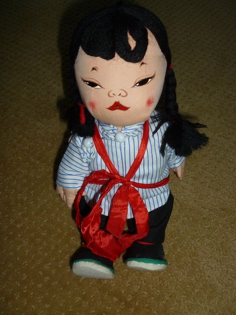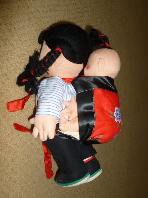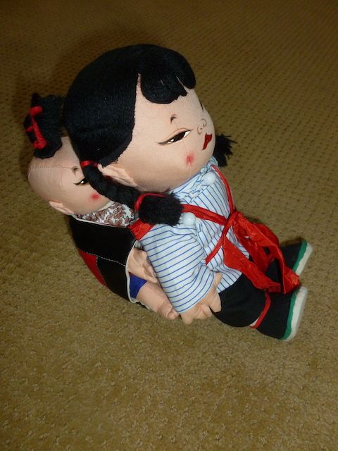 VenmoThis doll is 11 inches tall x 5 inches wide. There is a lot of detail on this dolls. The hand painting is wonderful. There is red woven into the mom's braid and into the baby's hair. The details on the shoes with four colors, red, green, black, and white. Even the baby is clothed. My wife's grandparents traveled international a lot in the 1950's and 1960's. This is one of the dolls they brought home. Must See. Price is firm.
