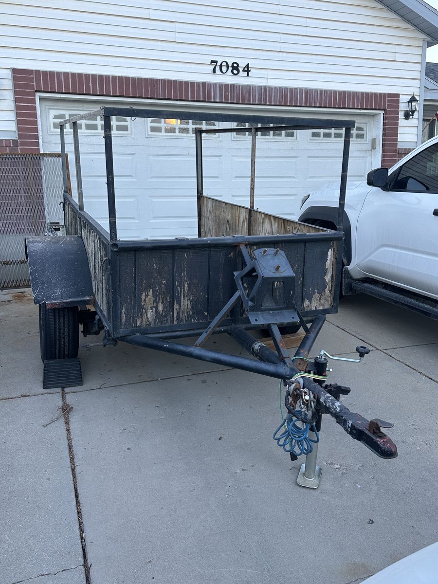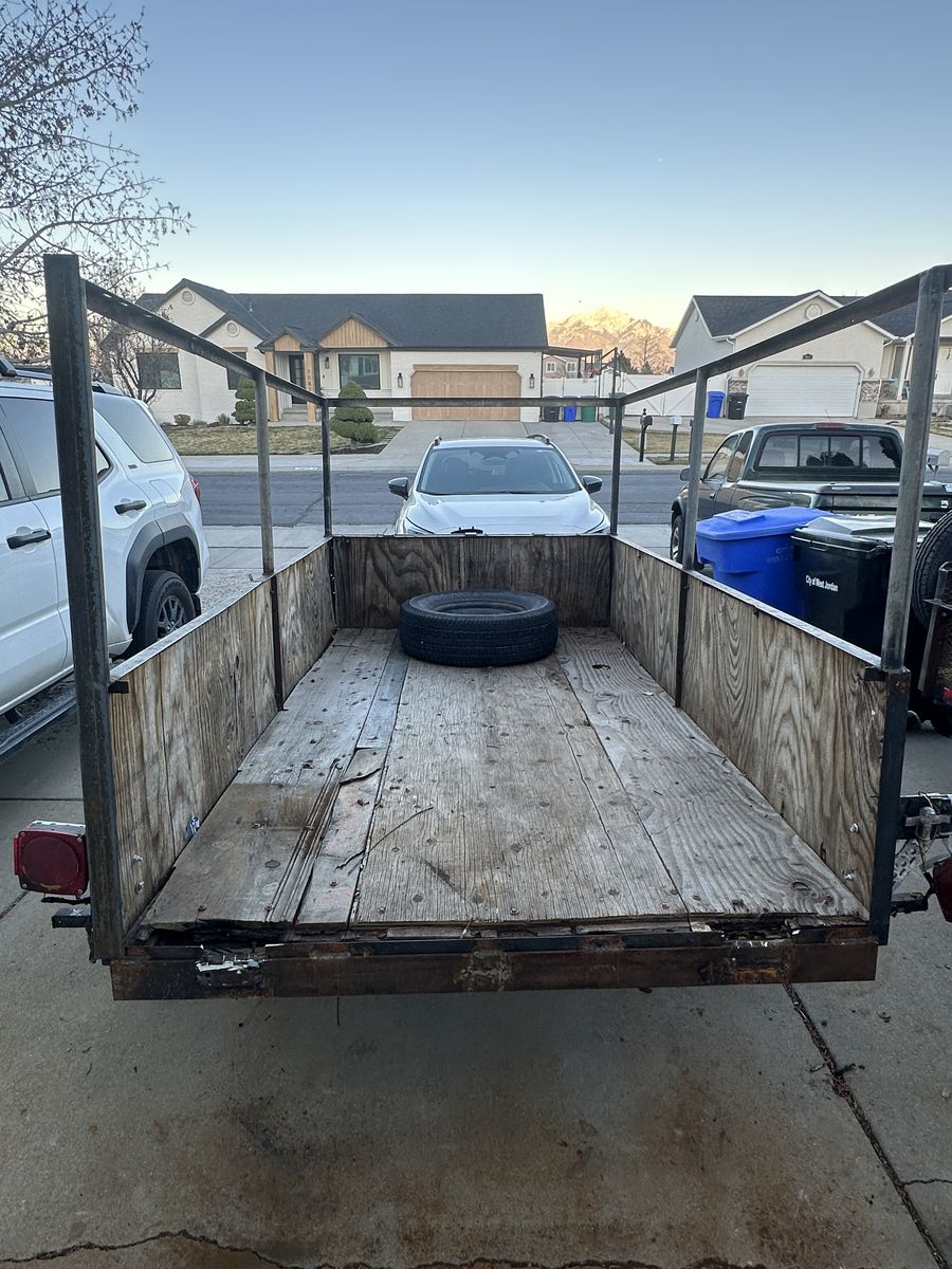 ApplePay250 OBO. 8ft by 4ft. Solid bones but needs some love. One brand new tire on it. Comes with a spare as well. Wood flooring but has a piece of sheet metal underneath it