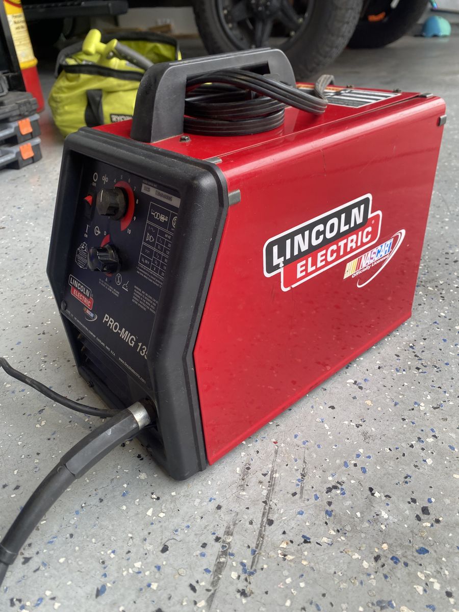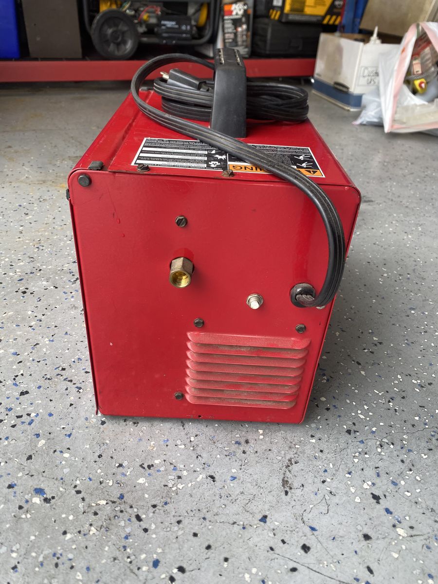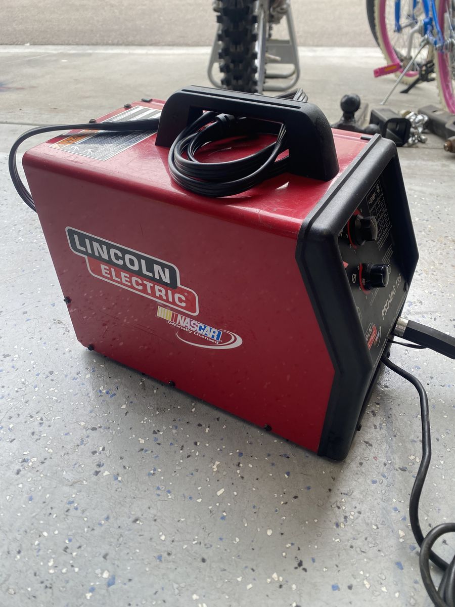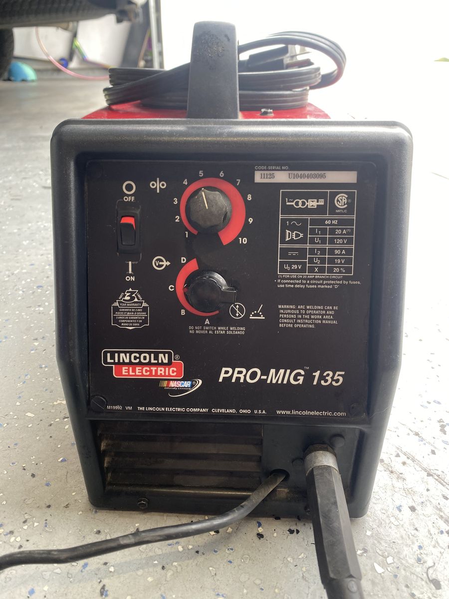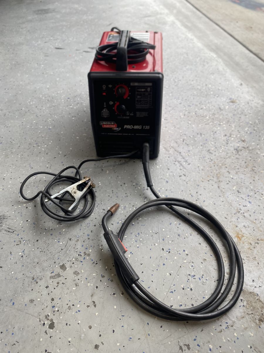 VenmoLincoln Electric PRO-MIG 135. Still works great, just had it laying around collecting dust. Plugs into 110V outlet.