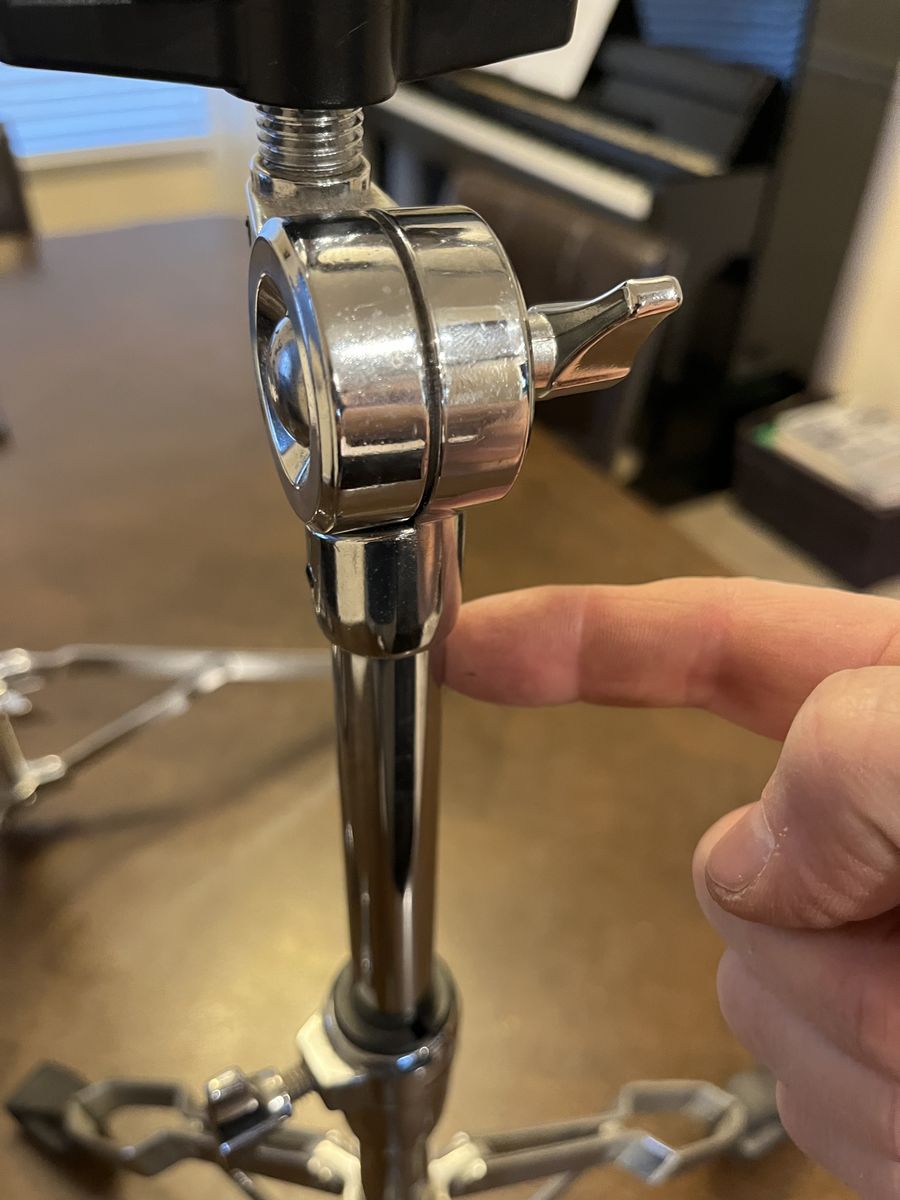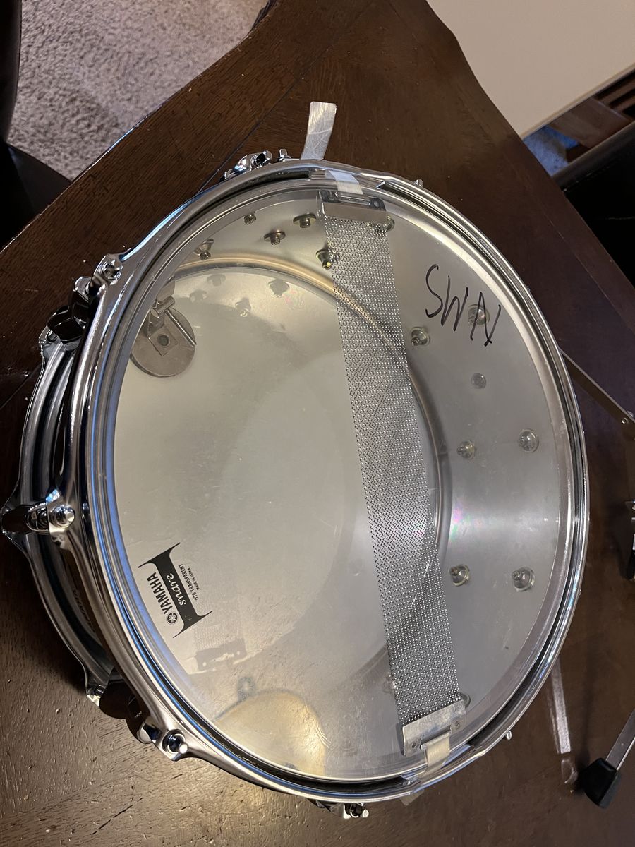 Good student/school band snare or a solid extra practice drum. Drum has normal cosmetic wear from use, and the head shows typical playing wear, but overall it presents well. The snare stand is missing one small part on the upper adjustment area shown in the close-up photo, so I’m pricing this mostly for the drum and including the stand as-is.
