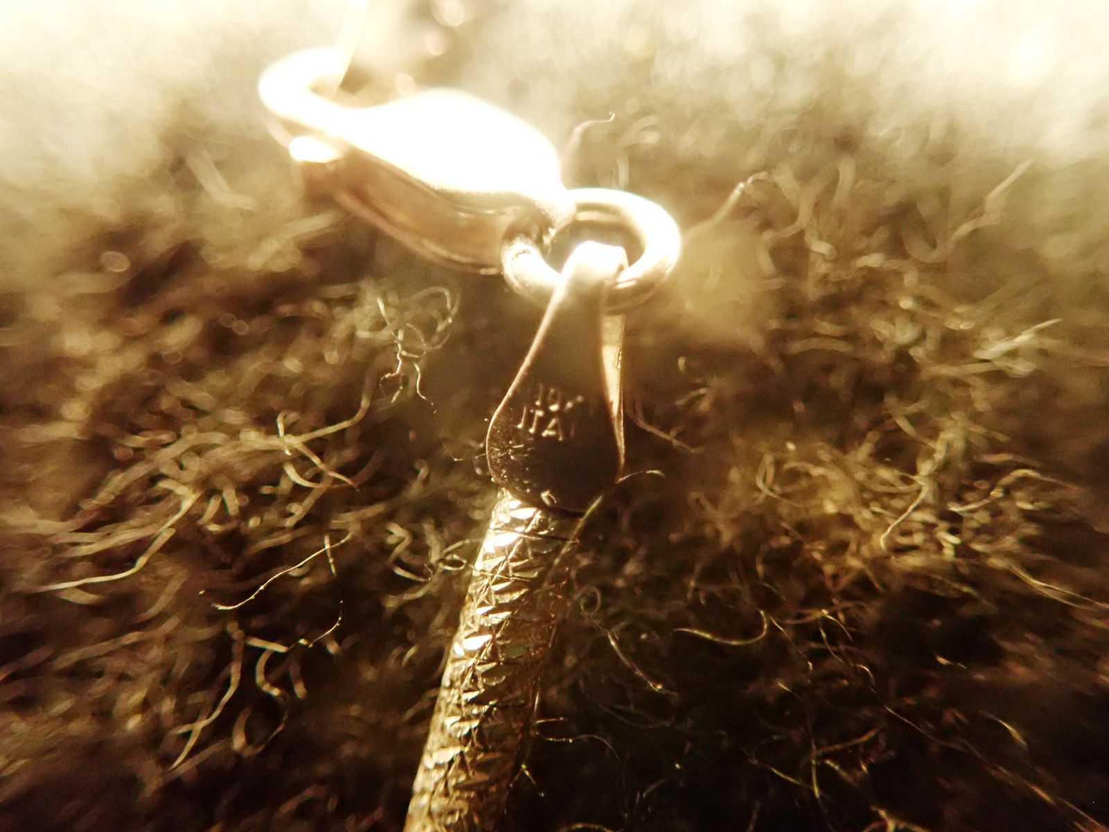 ZelleThis is a beautiful luxury piece of vintage jewerlry by Aurafin. This exquisite 10k gold necklace is 40 CM. It is in excellent condition with no wear marks. My girl friend is festidious and hardly wore it at all but a couple of times.