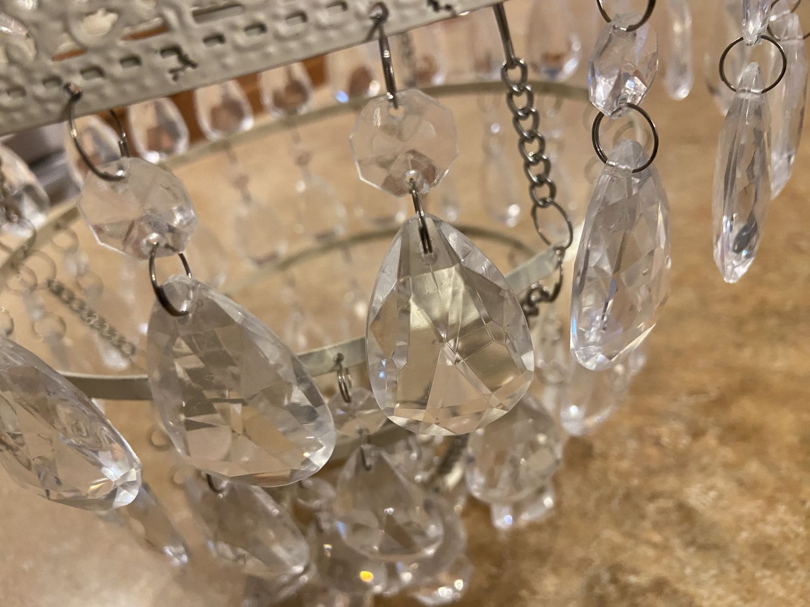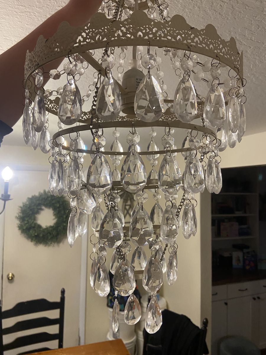 VenmoViv & Rae brand. 22' height, 12' diameter. All "crystals" (large and small) are intact. Perfect for a little girl's room!