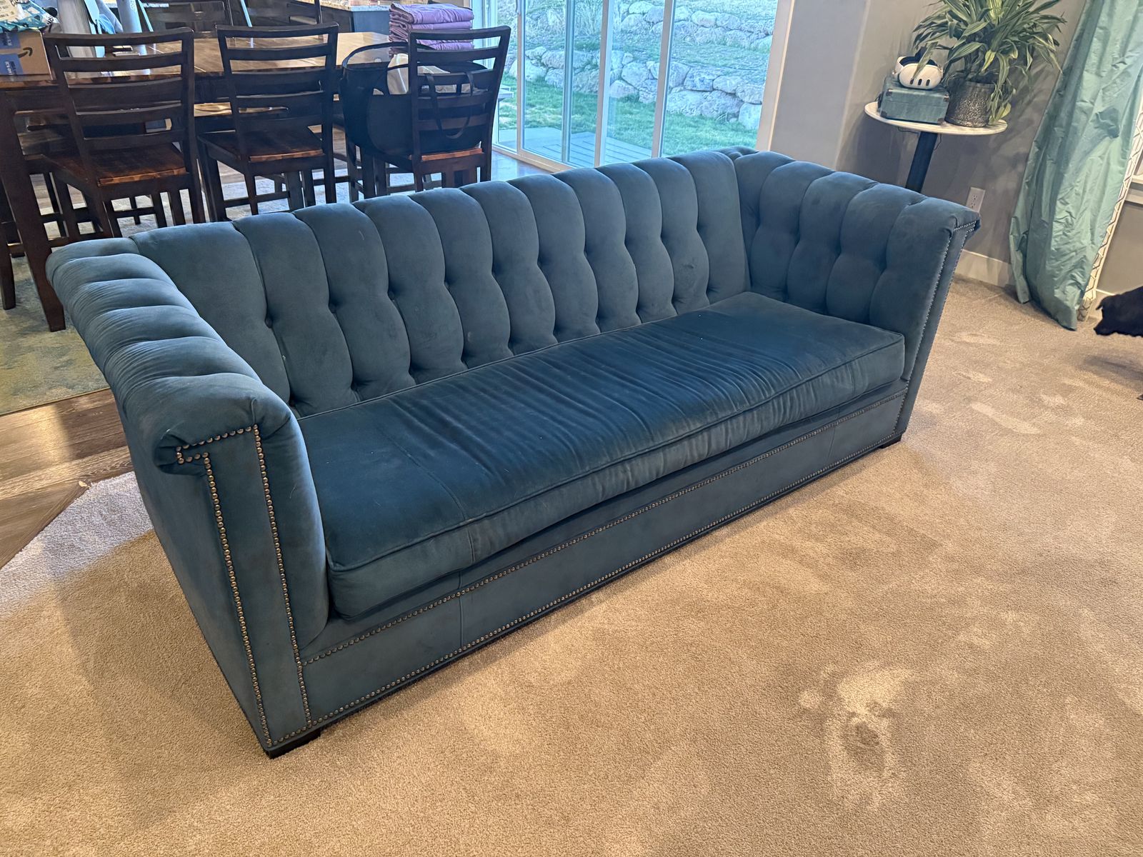 VenmoVery nice, teal couch for sale. Non-smoking home with pets. Couch is comfortable and in good shape with no damage to upholstery. Kept the couch in a divorce but upgrading to something larger. Listing at $200 but will consider all offers. Preference given to someone who can pick it up by Friday morning.