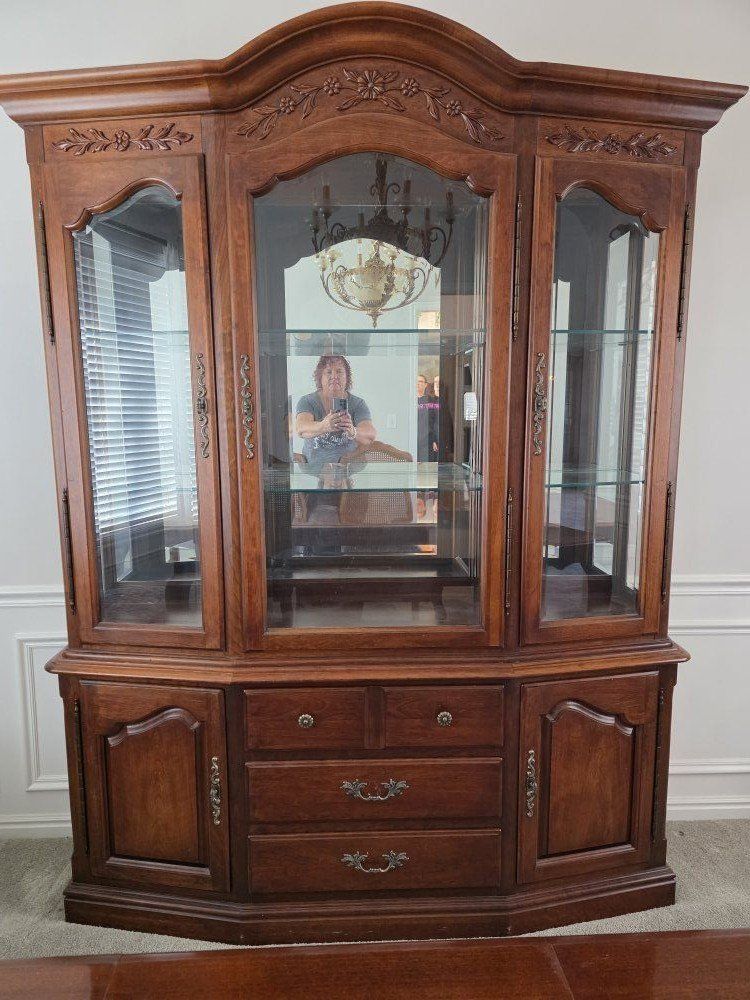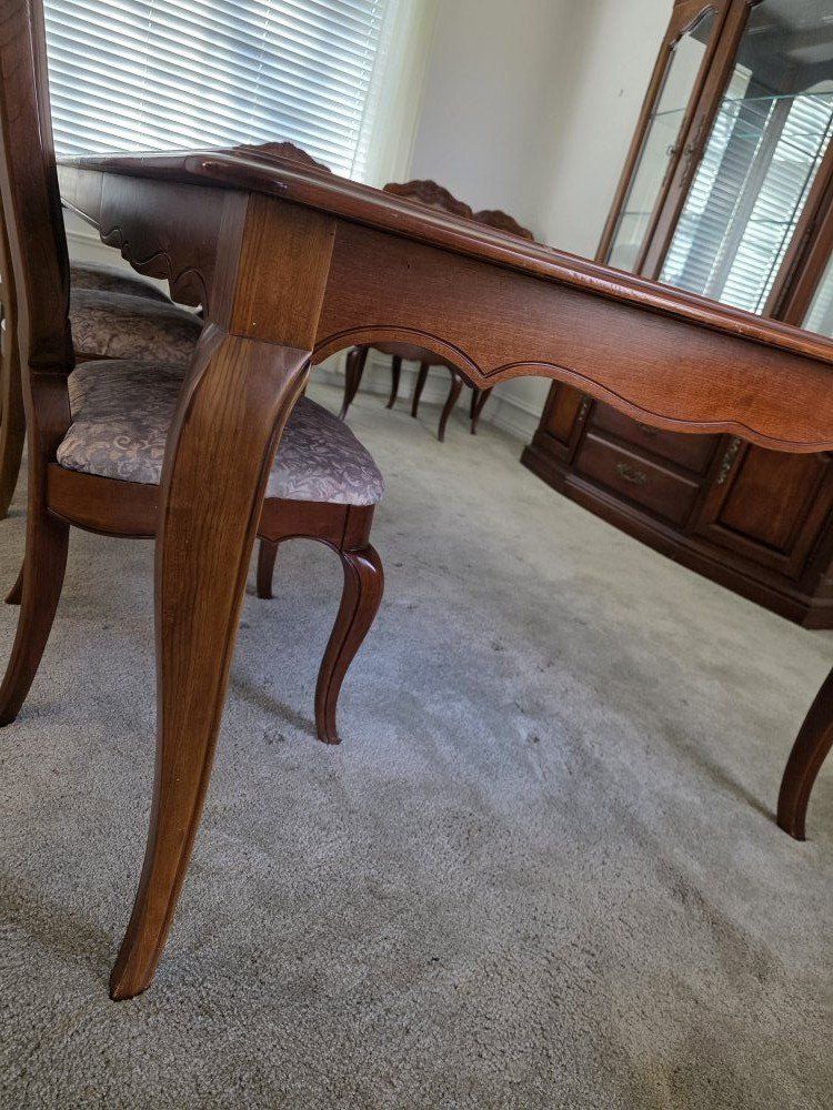 VenmoThomasville Montrachet Dining room Set. Includes: Dining Table, 6 Chairs, 2 Captain chairs, and China Hutch Sizing Table - 108" L x 45" W x 28" H total length includes 2 leafs (each leaf is 28 " W) China Hutch - 82 " H x 63.5 " W x 15 " D All pieces are in good condition.