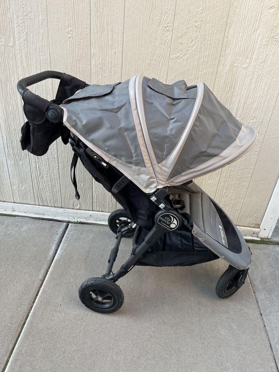 VenmoCity mini GT stroller. All terrain stroller with forever air tires. One hand compact fold, adjustable handlebar, near flat seat recline, and UV 50+ canopy with peekaboo window.