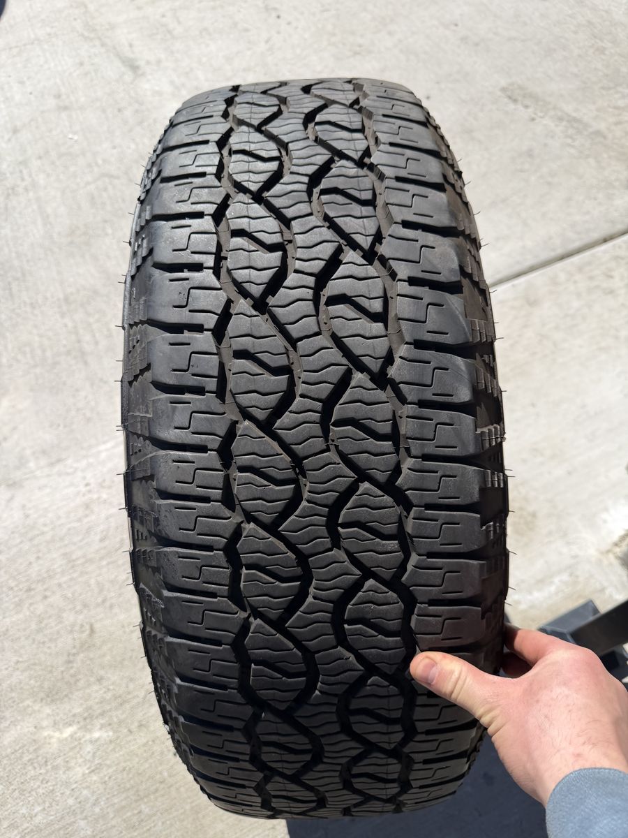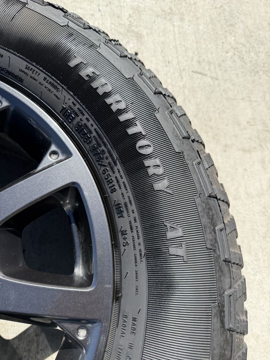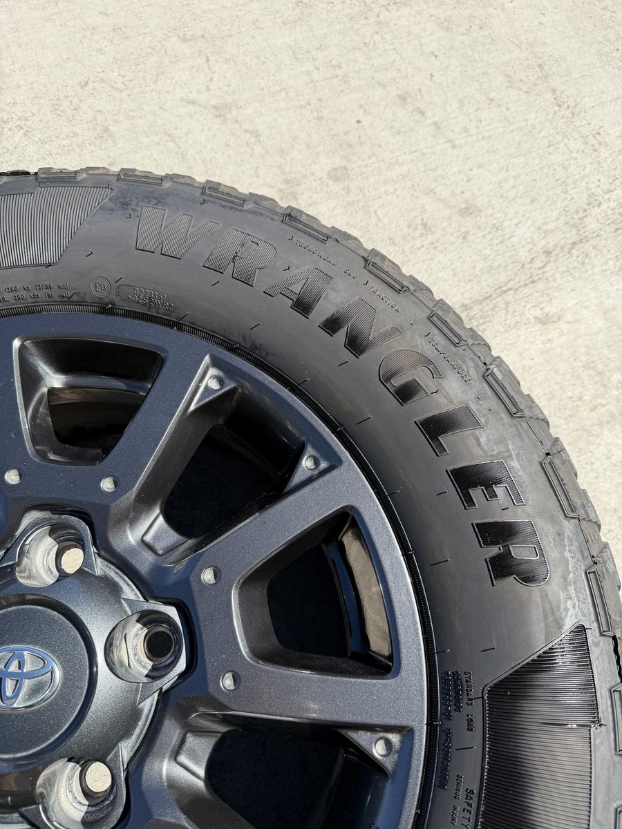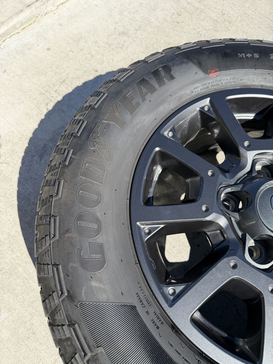 ApplePaySet of 4-Toyota Tundra Sequoia Rims and Tires 275/65R18 Goodyear Wrangler Territory AT Like new only 1000 miles on them in excellent condition,asking $1700 obo I can sell the rims or tires separately Bolt pattern 5-150 Comes with sensors They will fit Toyota tundra sequoia Land Cruiser Lexus Text anytime 385-402-2292